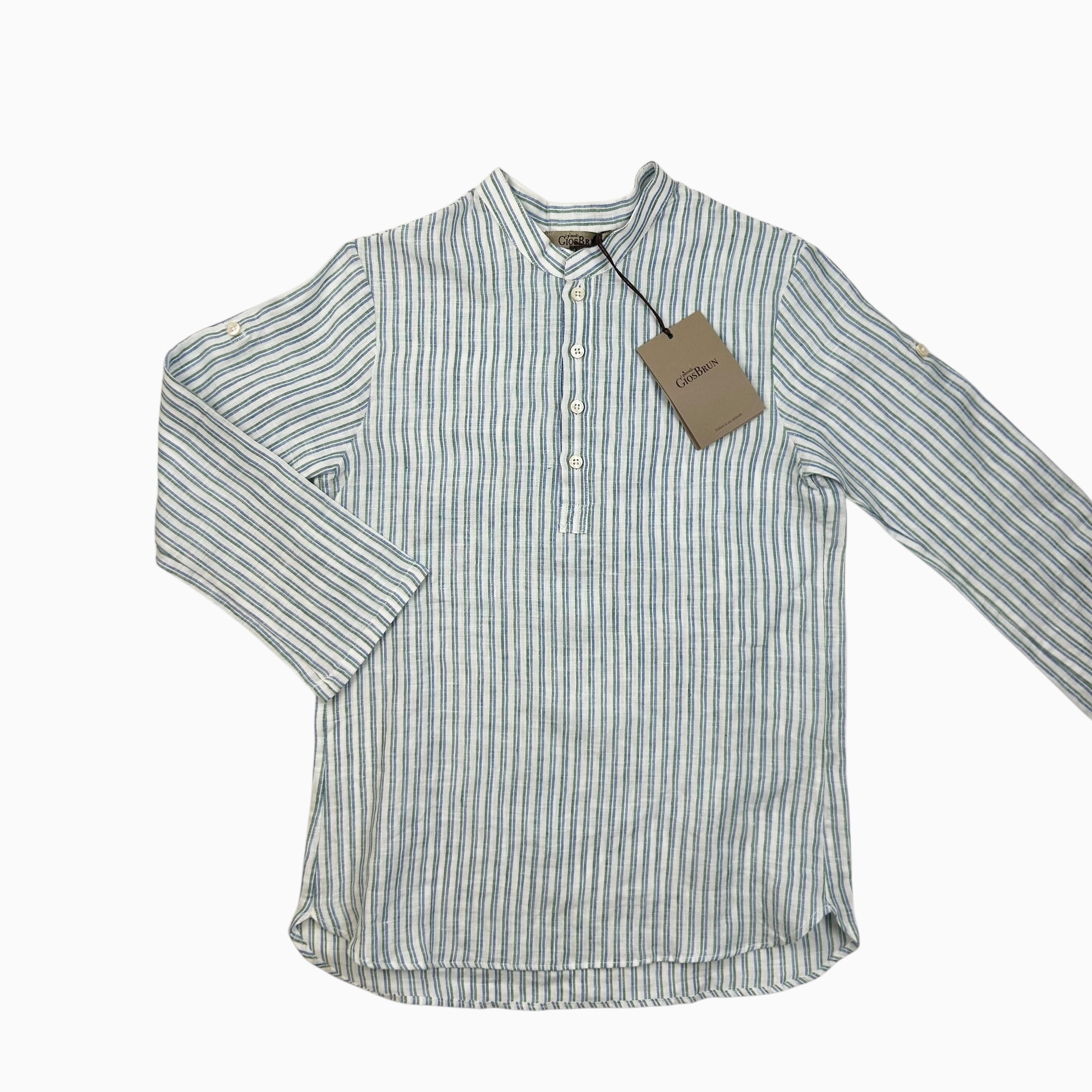 Blouse à col mao à rayures bleues et vertes en lin 12Y