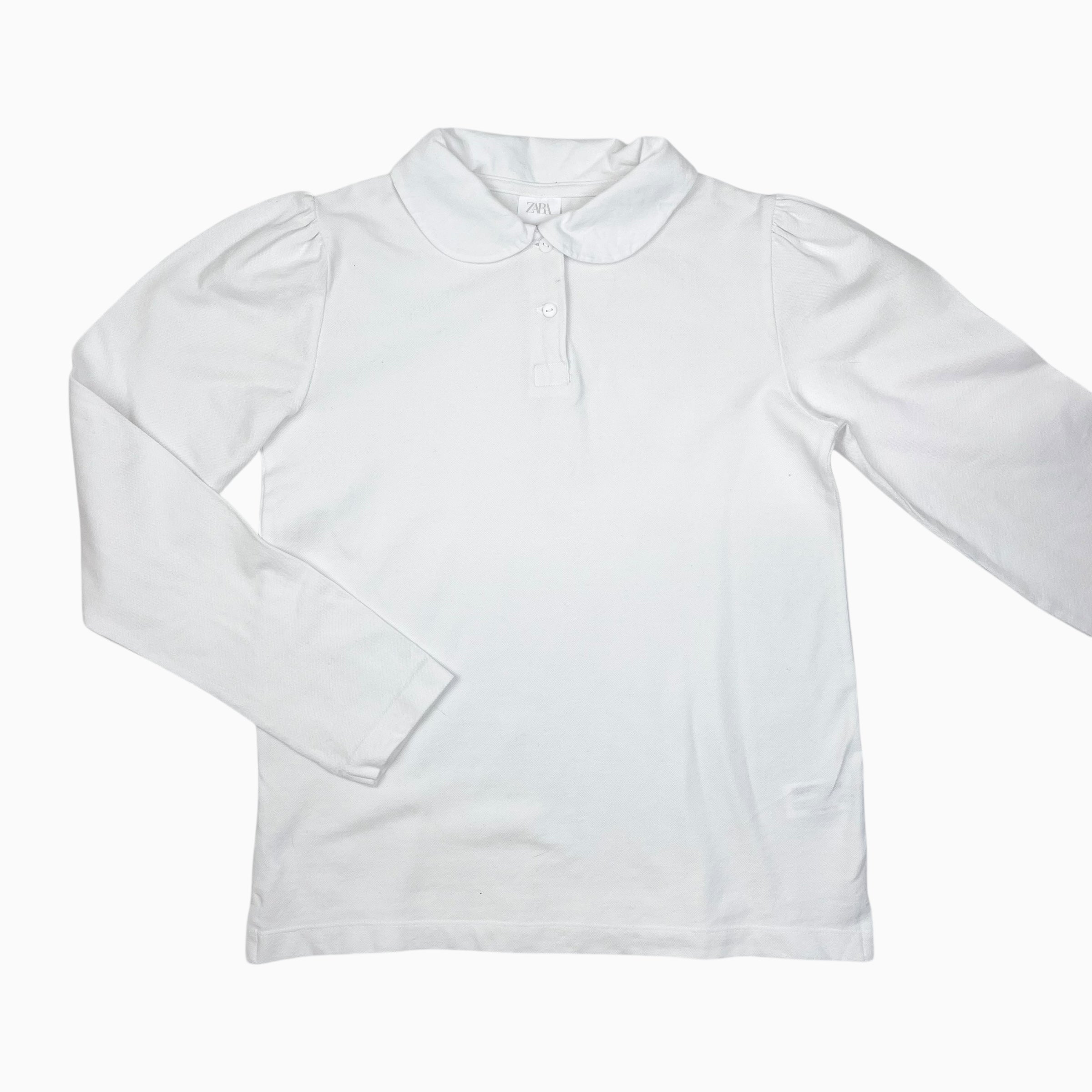 Chandail à col claudine blanche en coton piqué 13-14Y