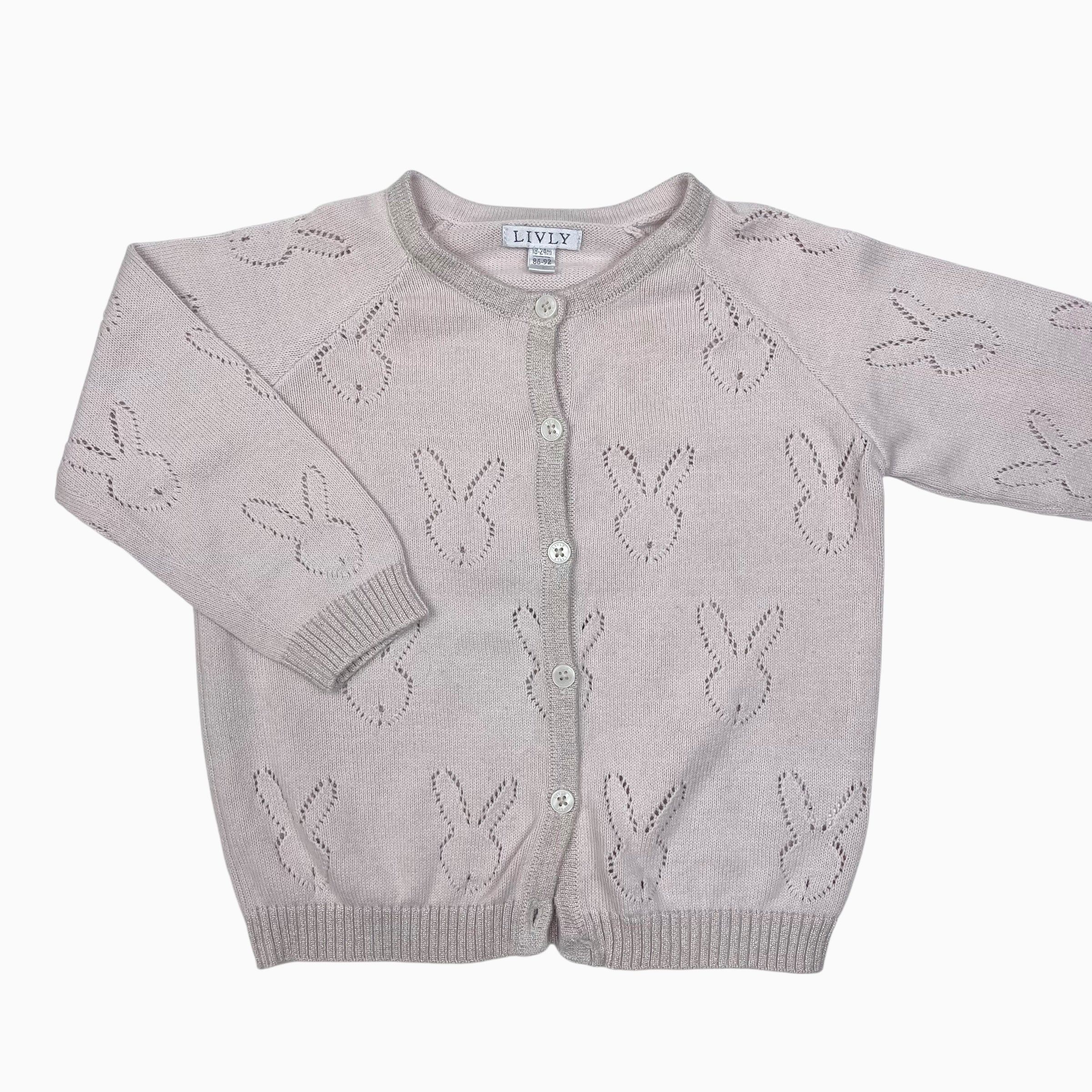 Cardigan rose pâle 'lapins' à pointelle en tricot 18-24M