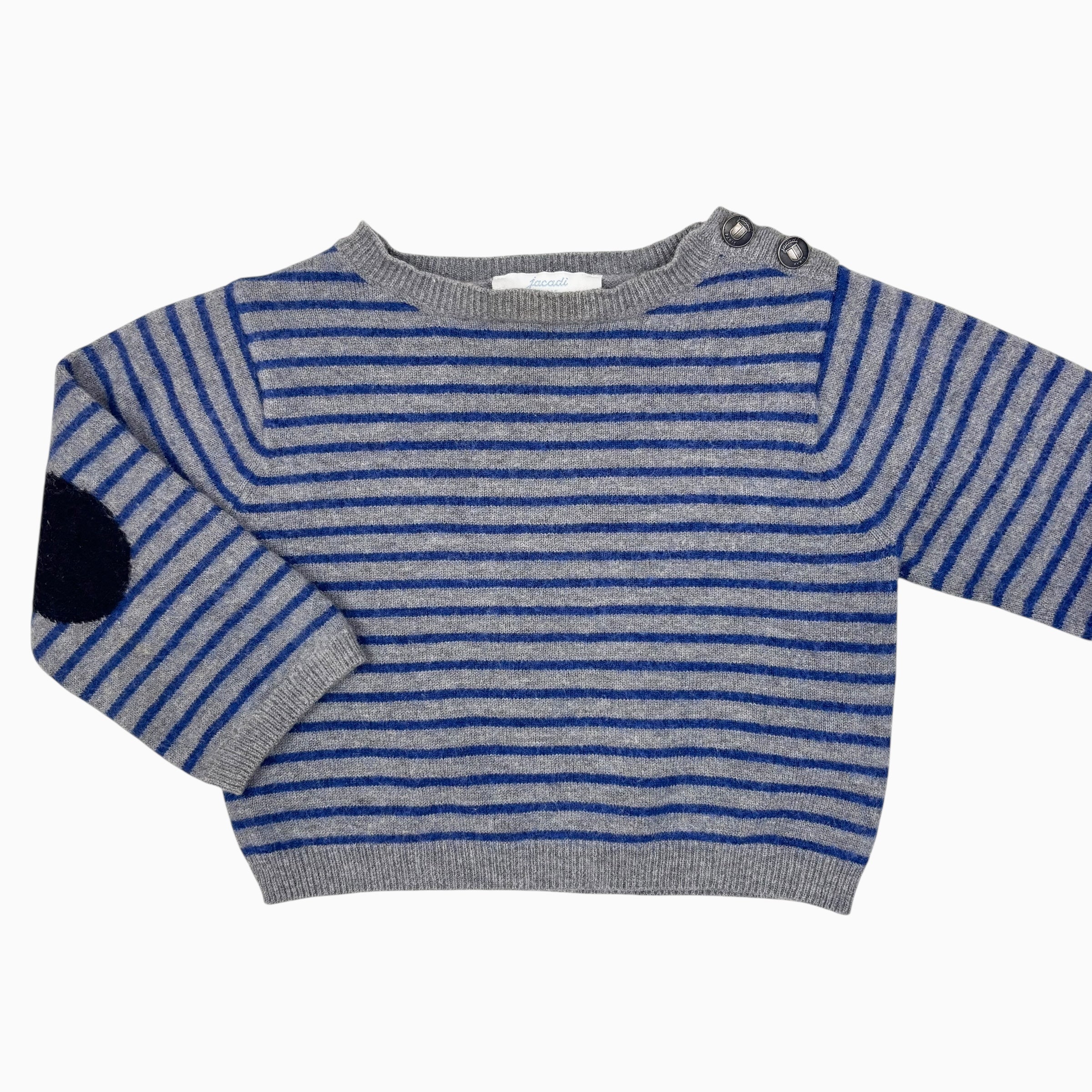 Pull gris à rayures en tricot de laine et coton (fit 9-12M) 18M