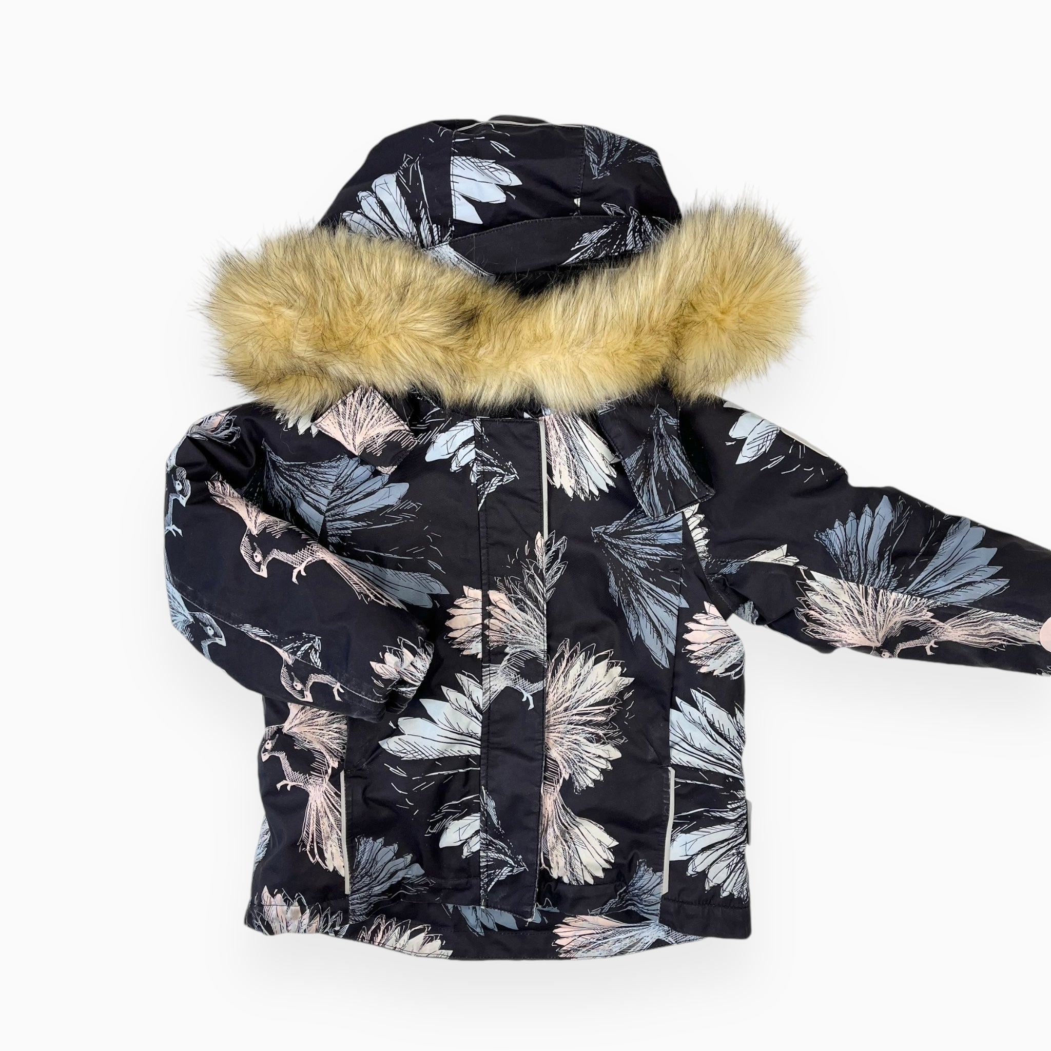 Manteau d'hiver marine avec motif fleurs (fourure amovible) 98cm 3Y