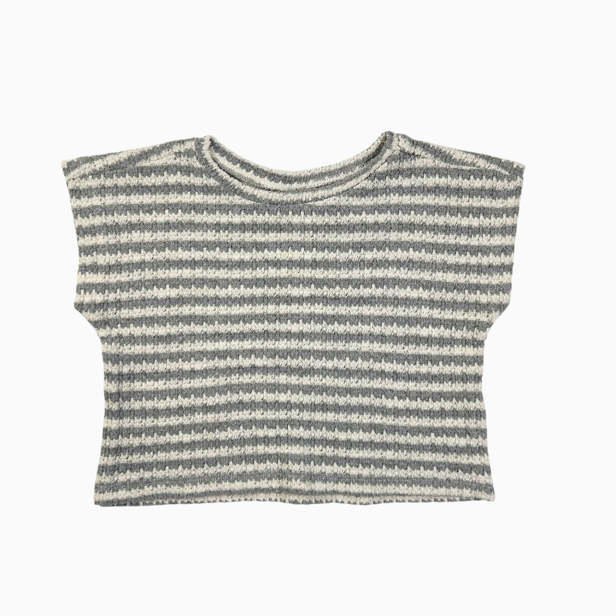 T-shirt crocheté à rayures grises et crèmes 2-3Y