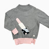 Pull gris en tricot de coton motif rouge à lèvre 4Y