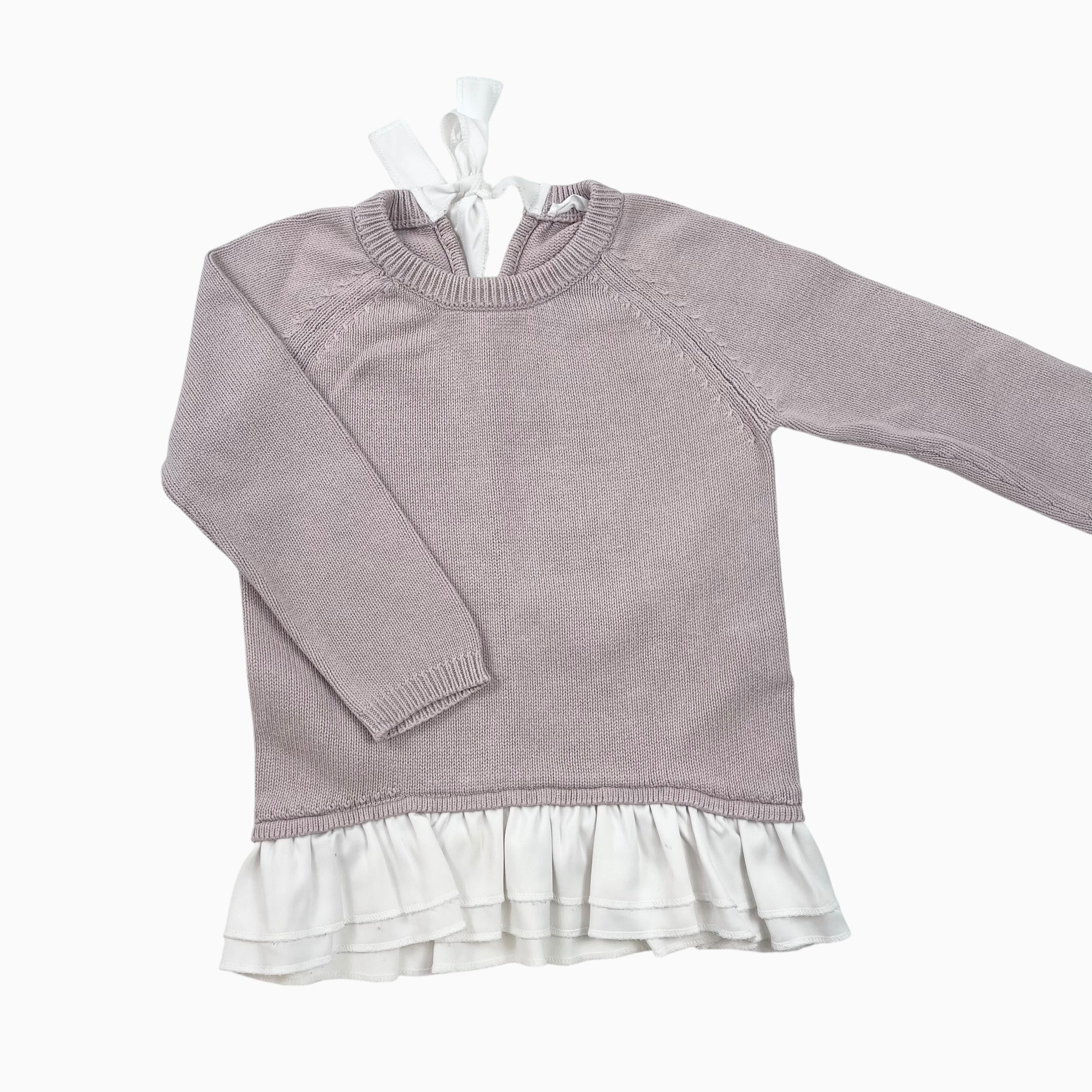Pull rose-lilas en tricot de coton avec volants 4Y