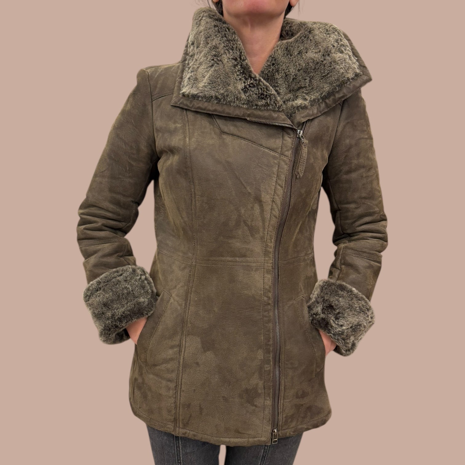 Manteau vintage marron en cuir doublé en peluche pour femmes 40EU