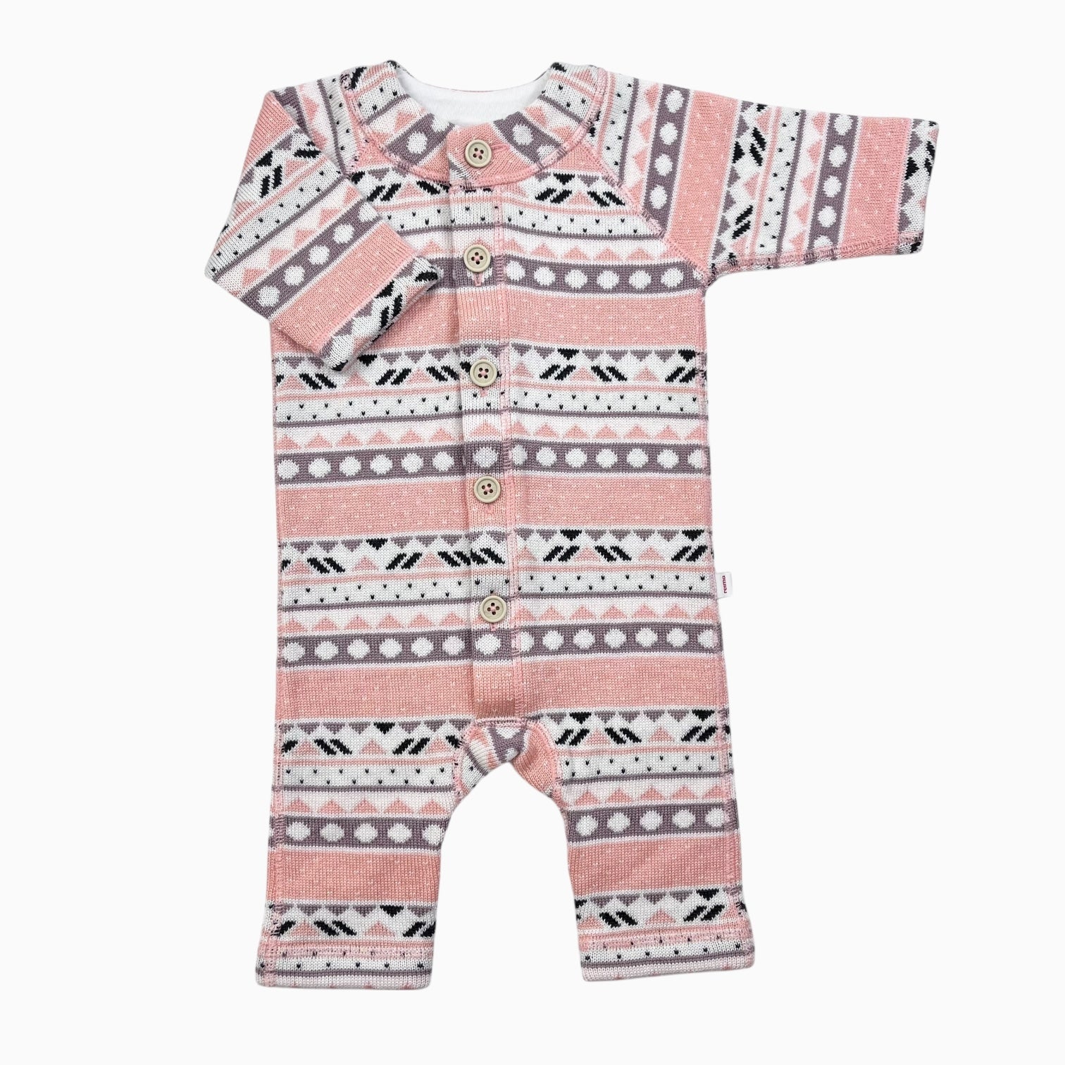 Combi rose à motifs en tricot de laine 56-62CM 3M
