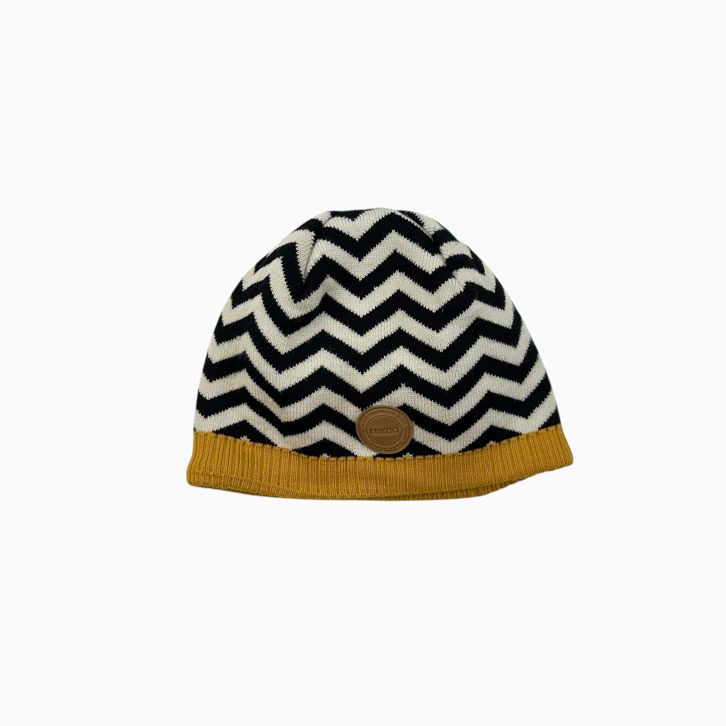 Tuque à chevrons noirs en tricot de laines mélangées 52-54CM fit 5-7Y