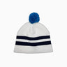 Tuque vanille à rayures marine à pompon doublé en polar 47CM