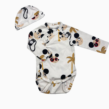Ensemble cache-couche et bonnet vanille souris 2-4M