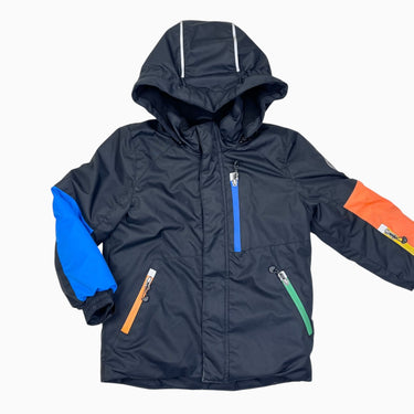 Manteau noir doublé en polar avec salopette 'dinos neons' 6Y