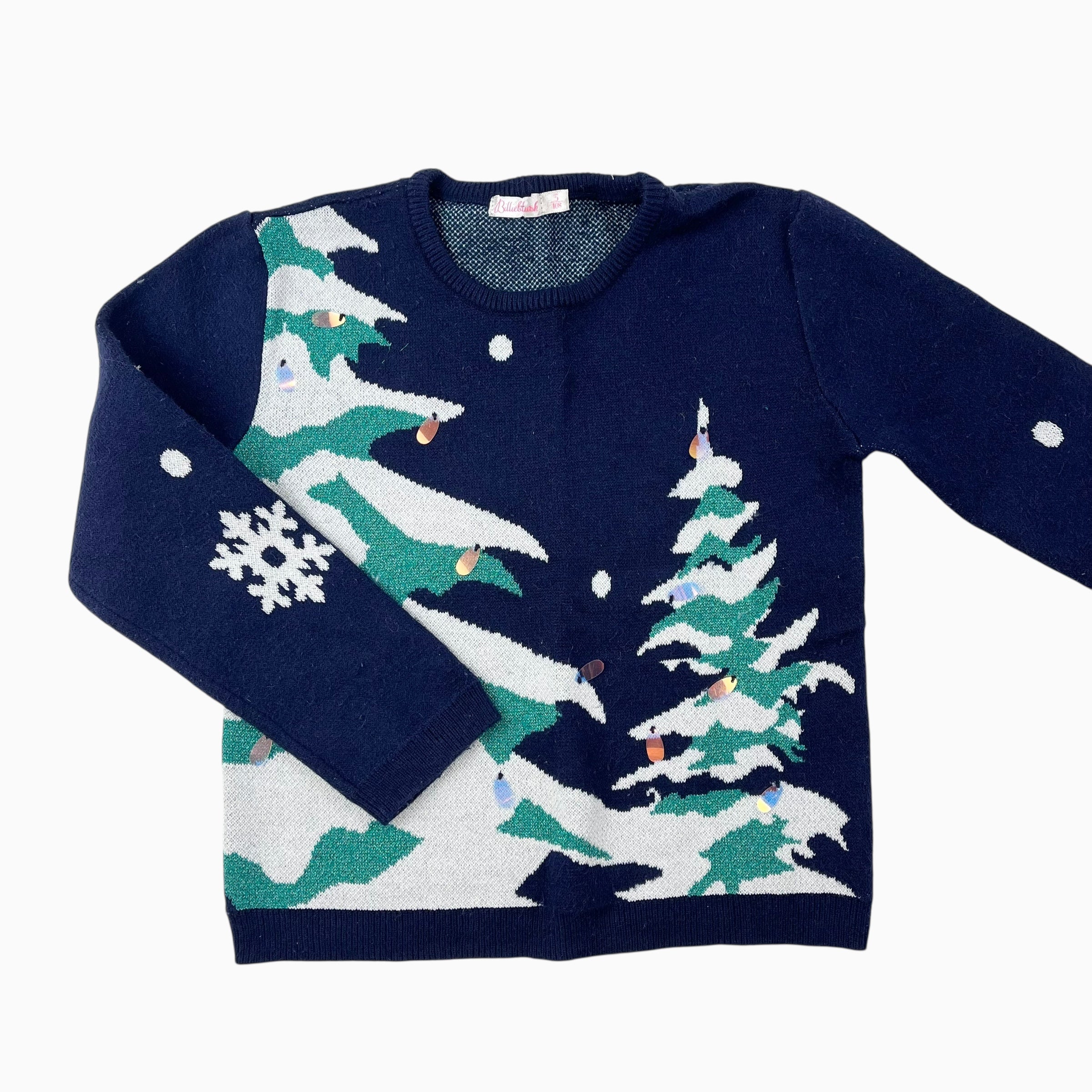 Pull marine 'sapins' paillettés en tricot mélangé 5Y