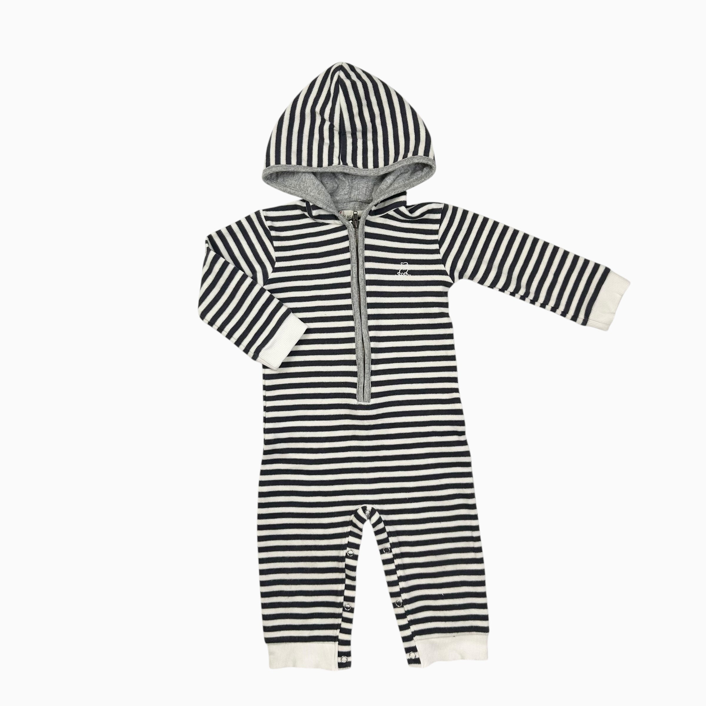 Combi à capuchon à rayures grises 'chien' brodé 12-18M