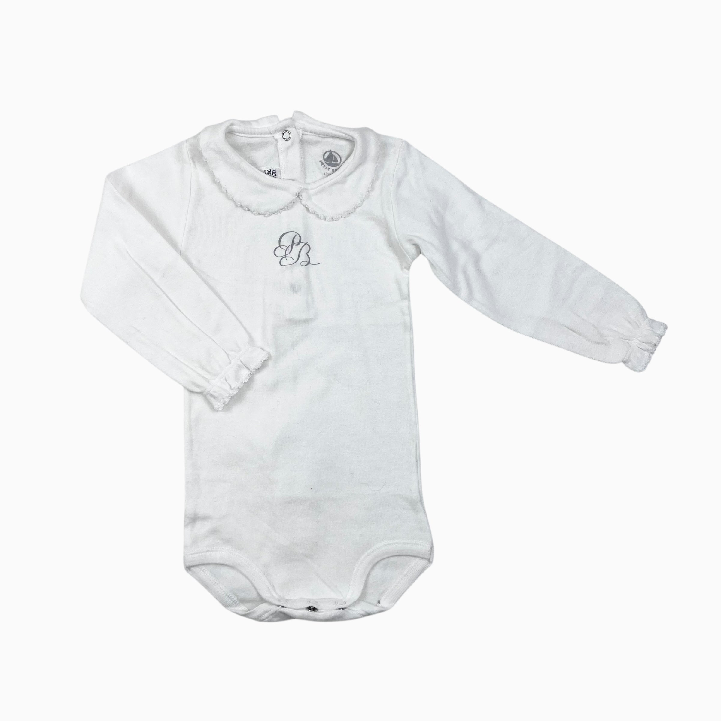 Cache-couche à col claudine blanc 'PB' caligraphié 12M
