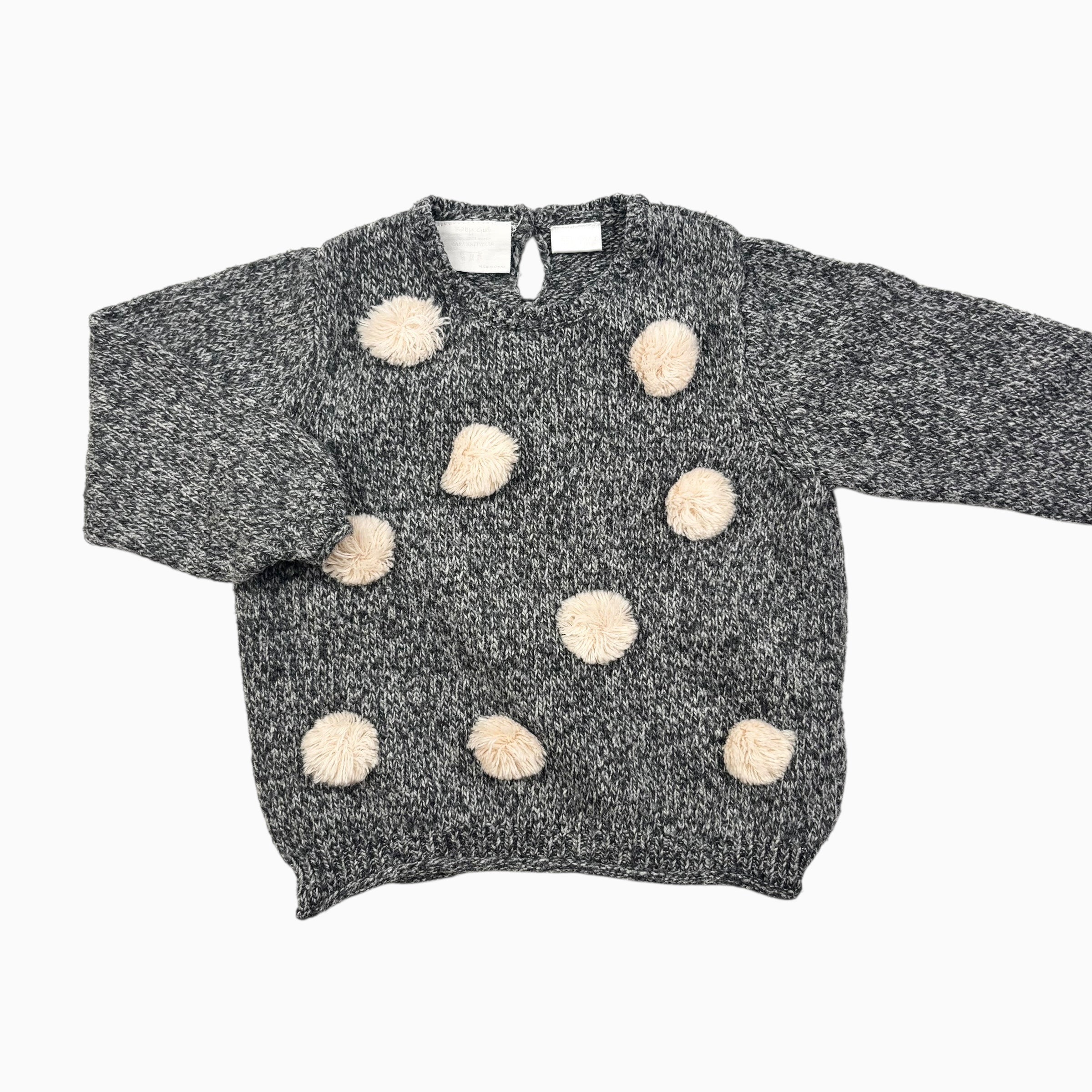 Pull noir mélangé avec pompon en tricot 6-12M