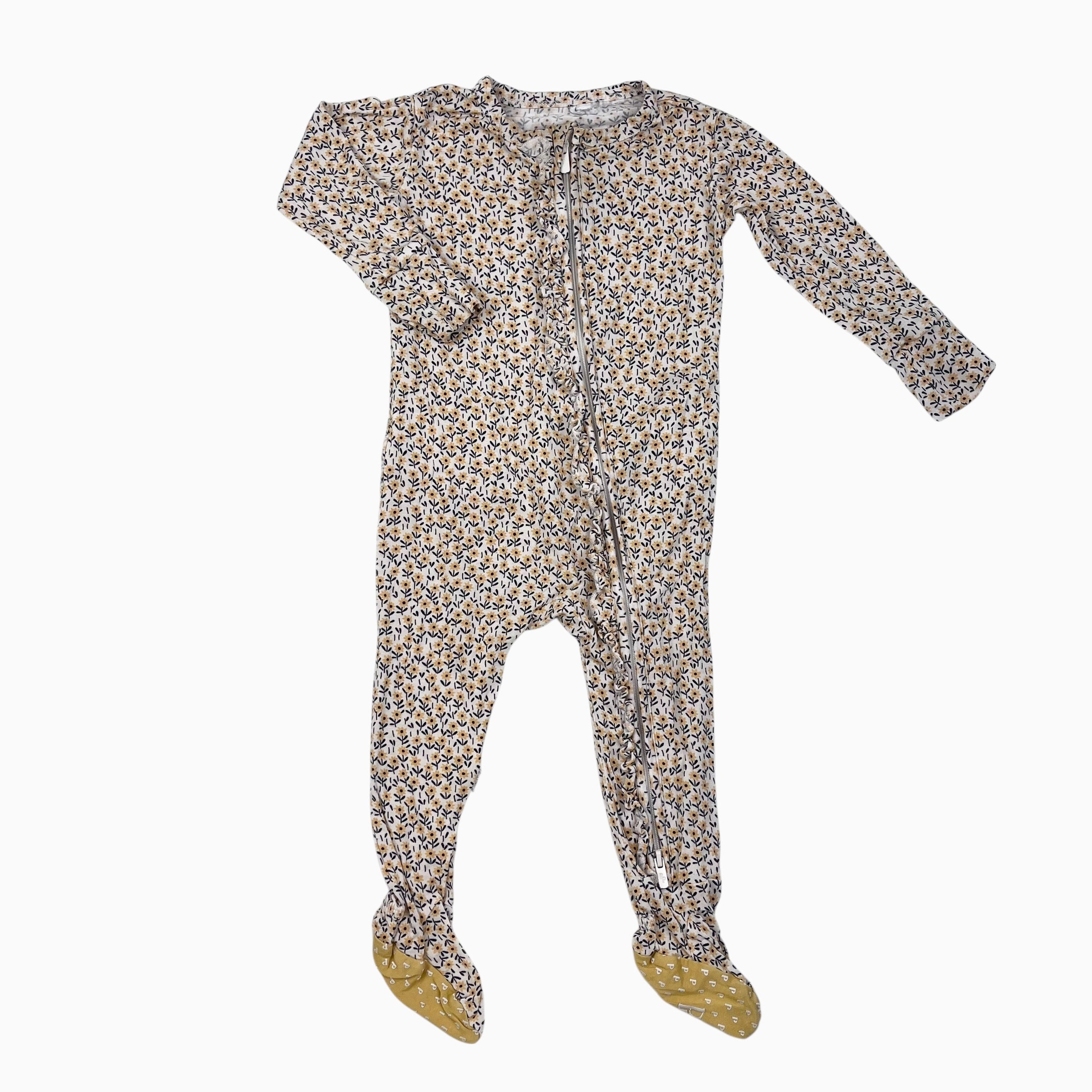 Pyjama vanille fleurs jaunes avec froufrou en bambou et spandex 12-18M