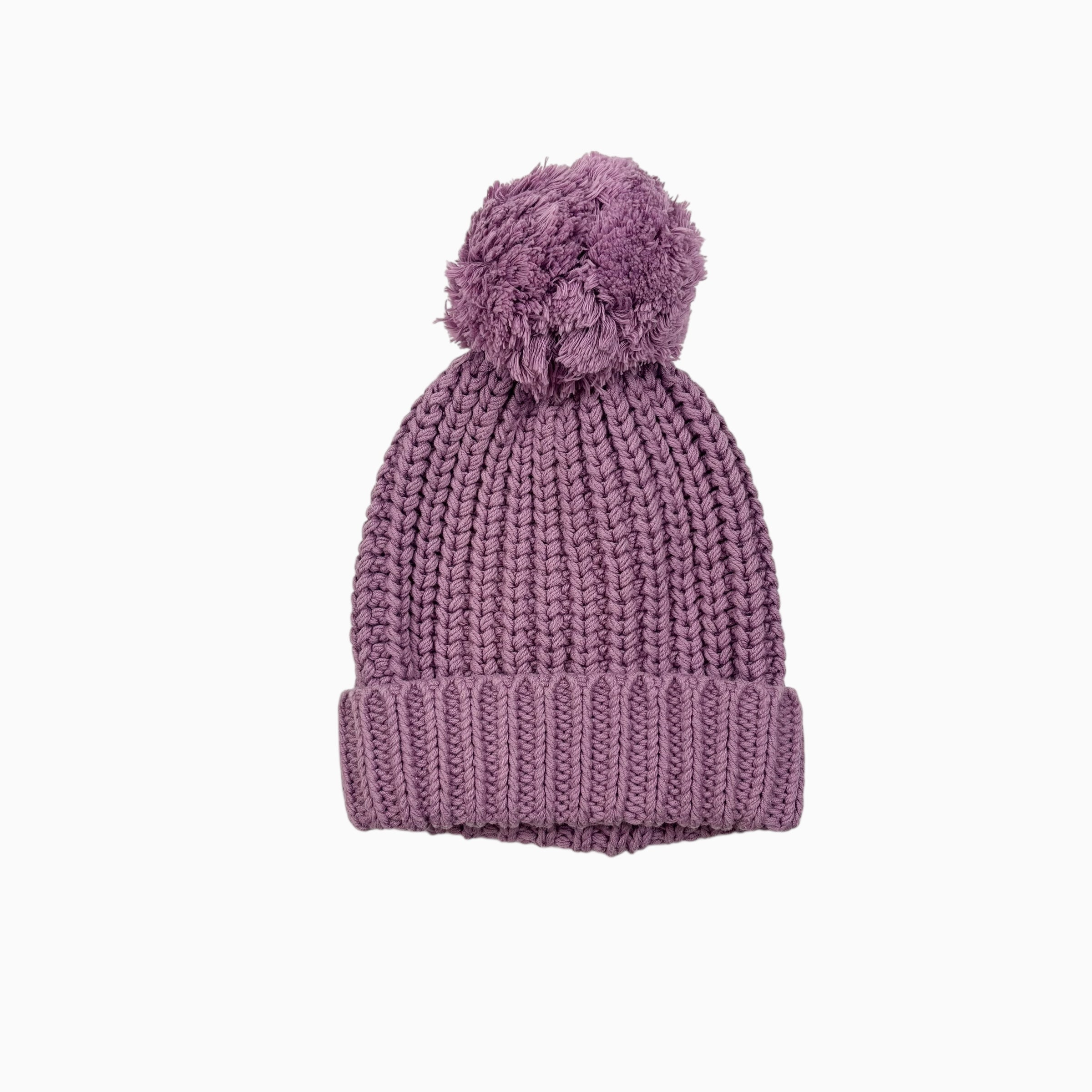 Tuque mauve avec pompon en tricot de coton 0-2Y