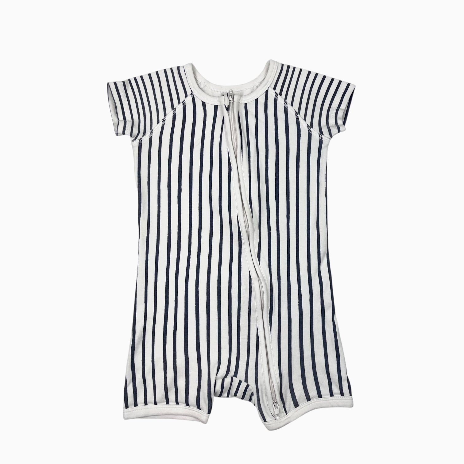 Combi short en coton bio rayé marine 12-18M