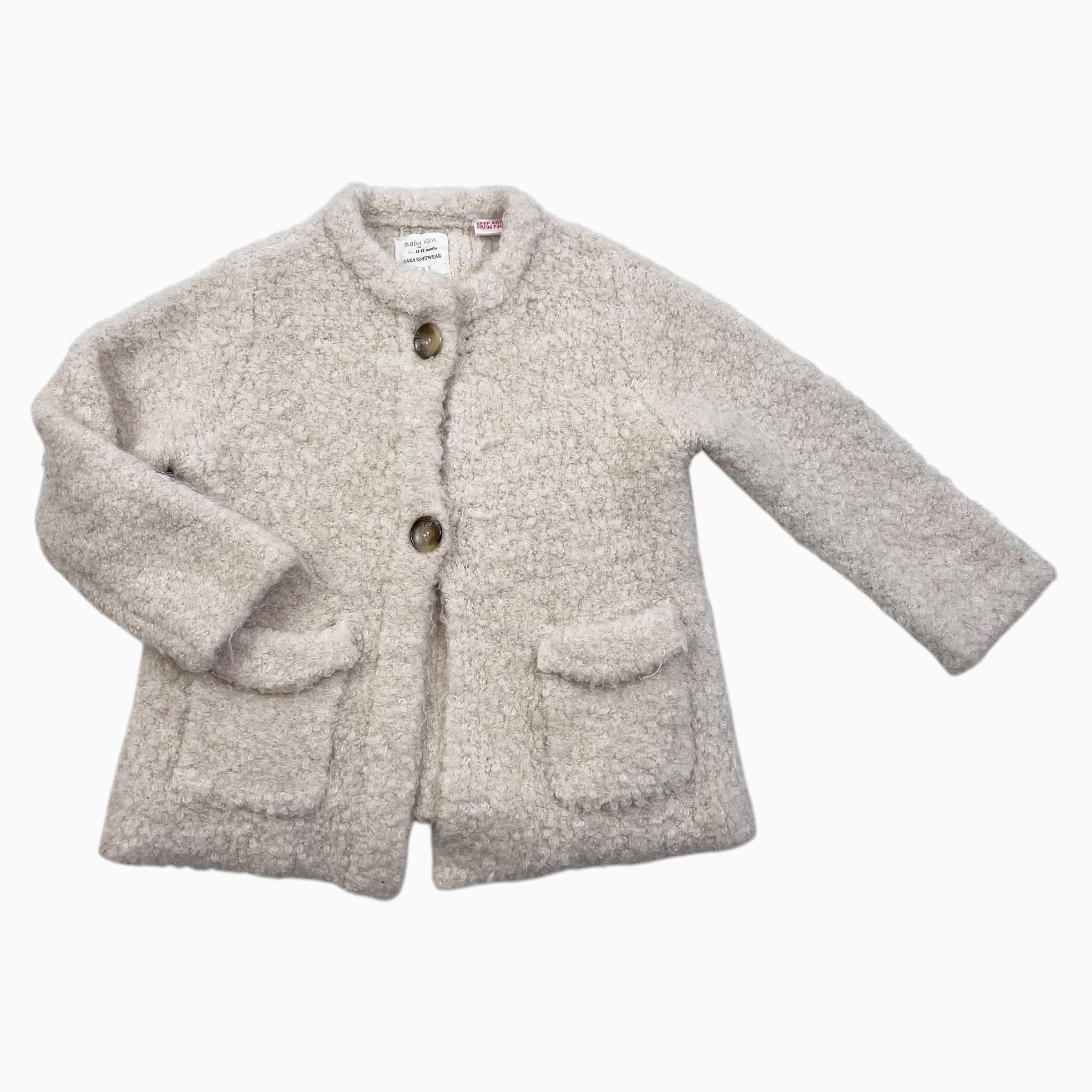 Manteau vanille en bouclette (fit grand) 12-18M