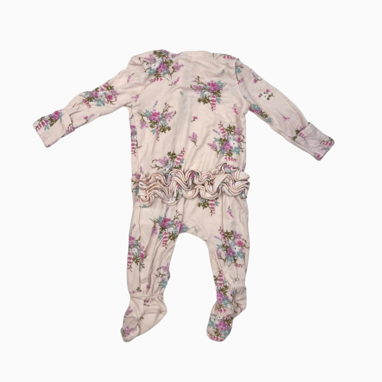 Pyjama rose pâle fleuri avec froufrou 0-3M