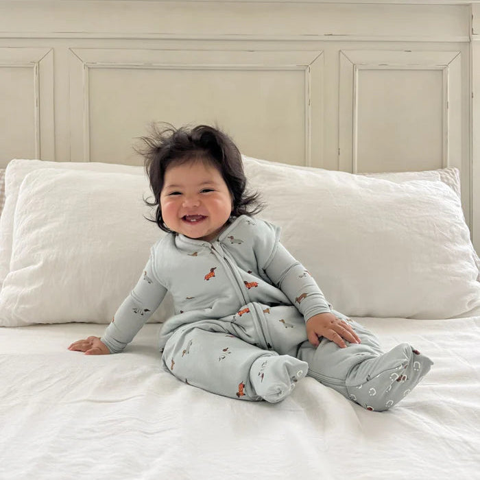 Combi gigoteuse bleue 'chiens' en bambou et spandex 1.0TOG 18-36M