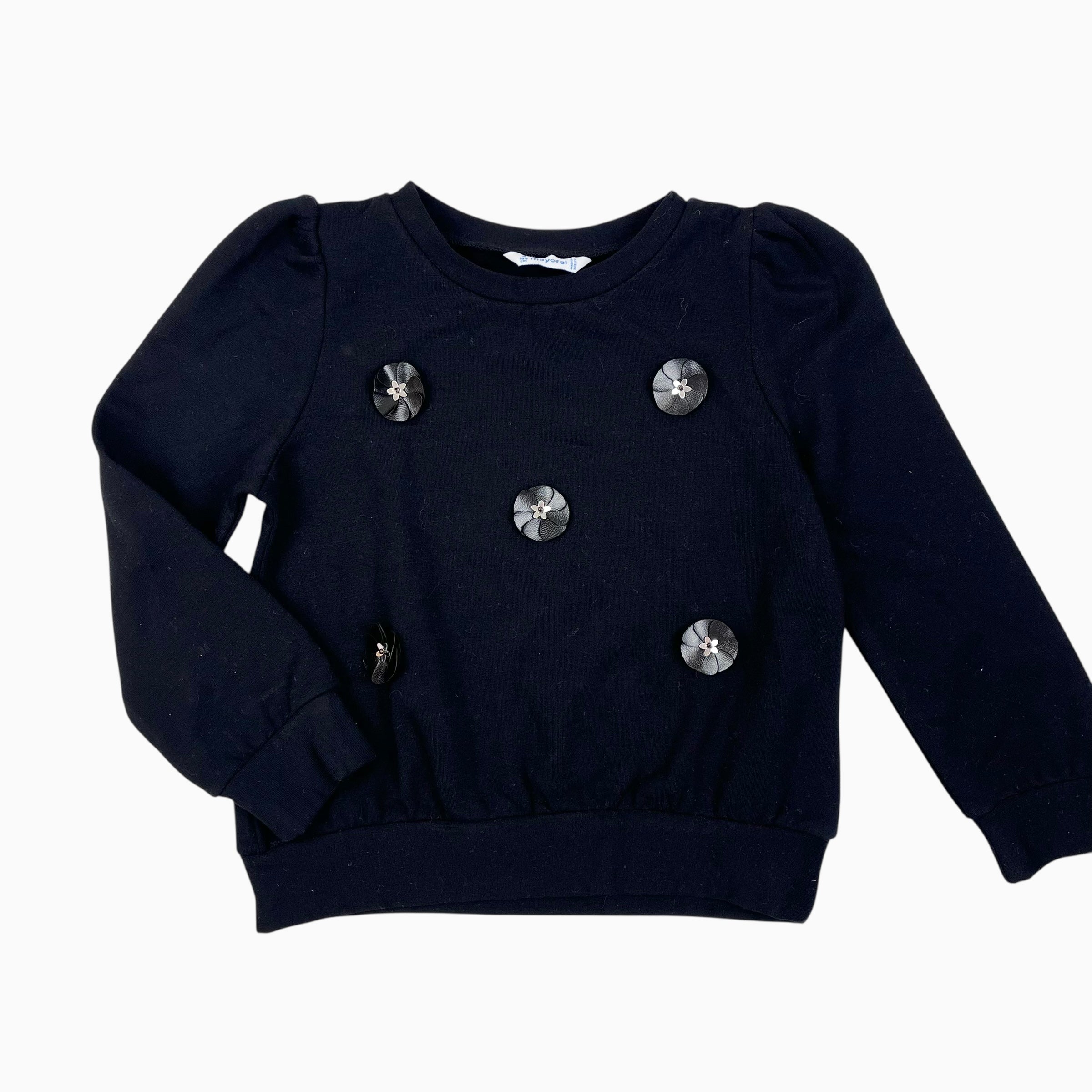 Pull noir avec fleurs en relief faux-cuir 4Y