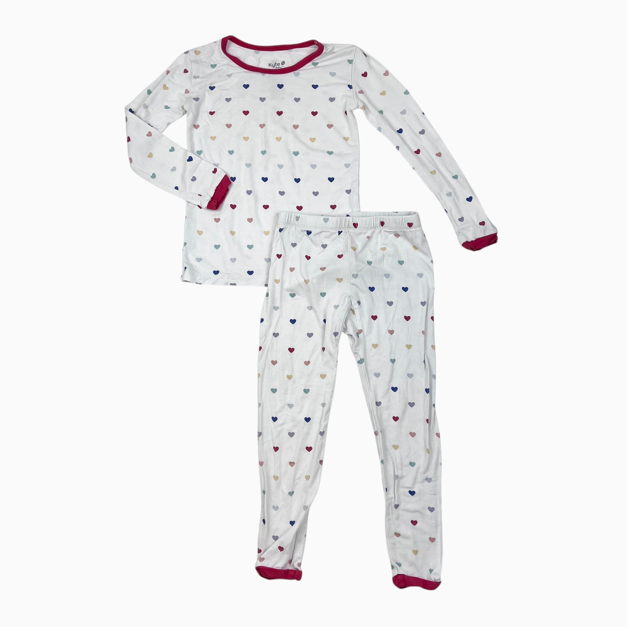 Pyjama deux pièce blanc 'coeurs'en bambou et spandex 4Y