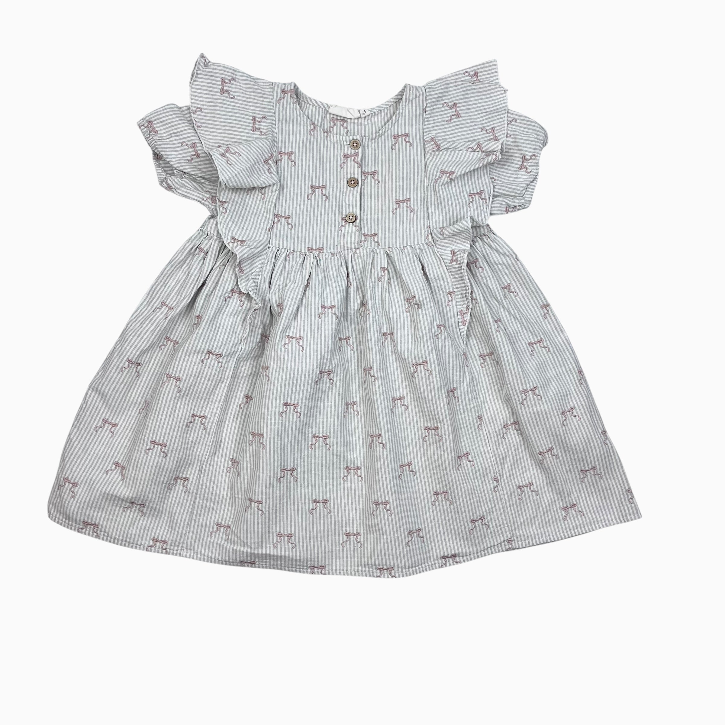 Robe à rayures grises 'noeuds' brodés 5-6Y