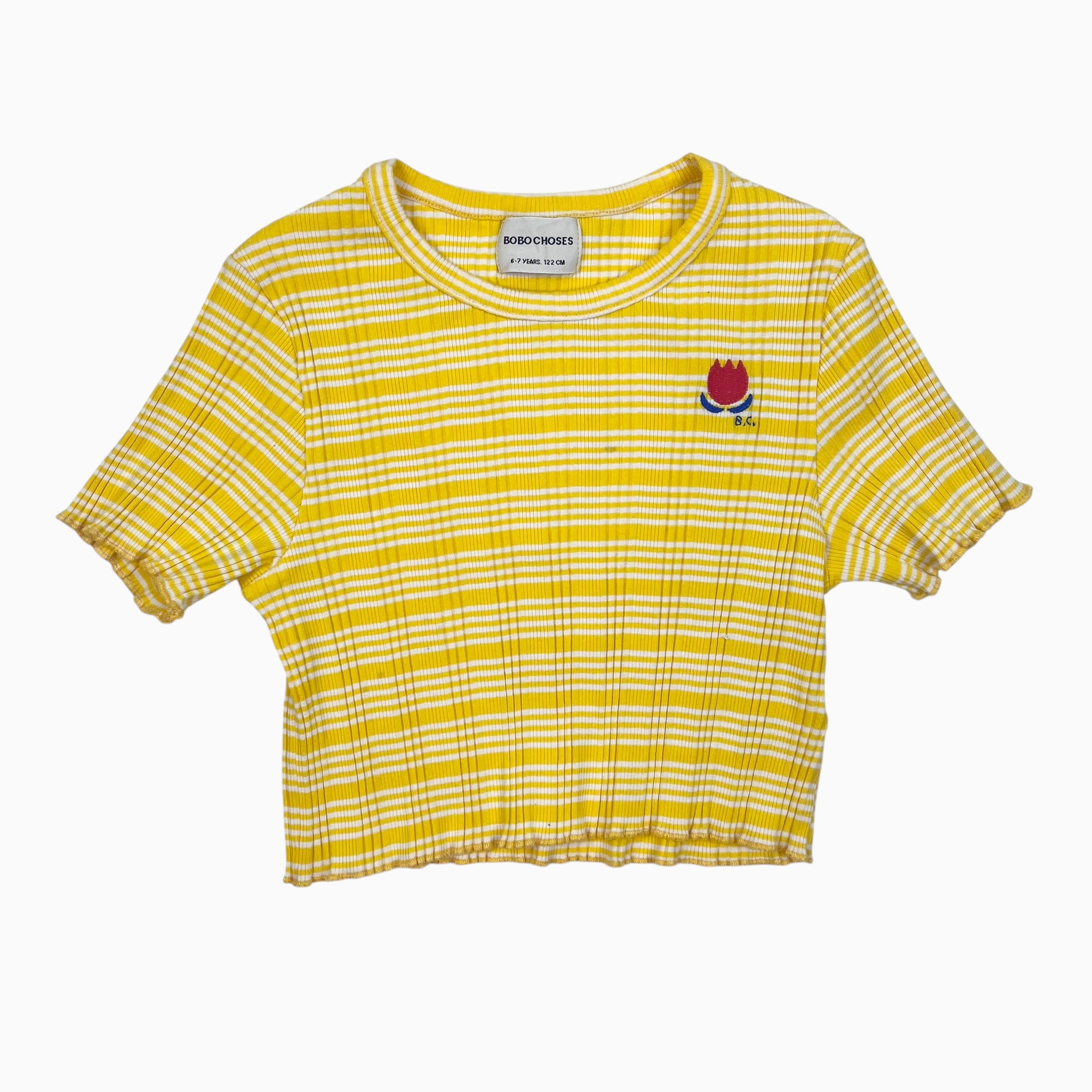 T-shirt 'cropped' jaune à rayures côtelé 6-7Y