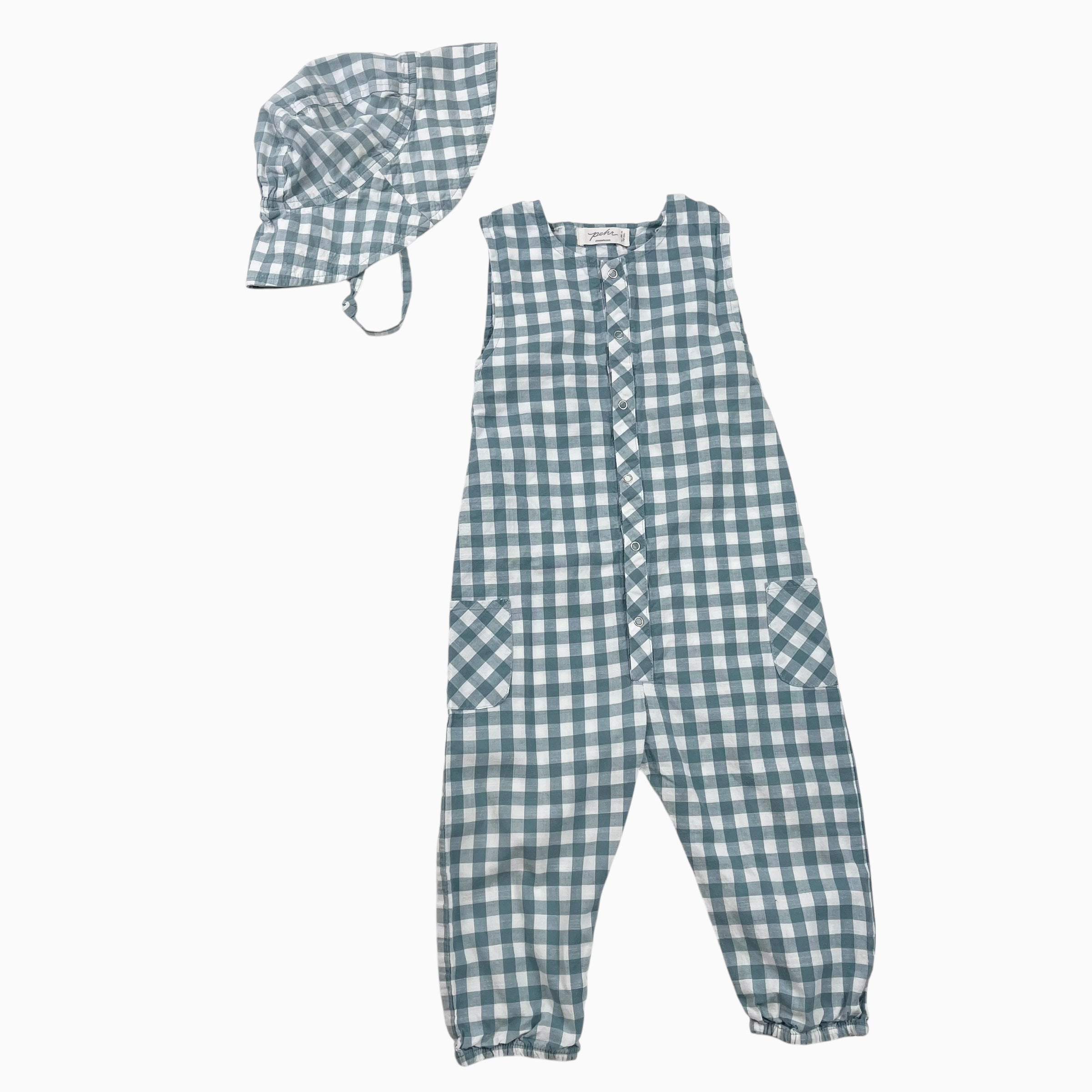 Ensemble combi et chapeau soleil vichy menthe 18-24M