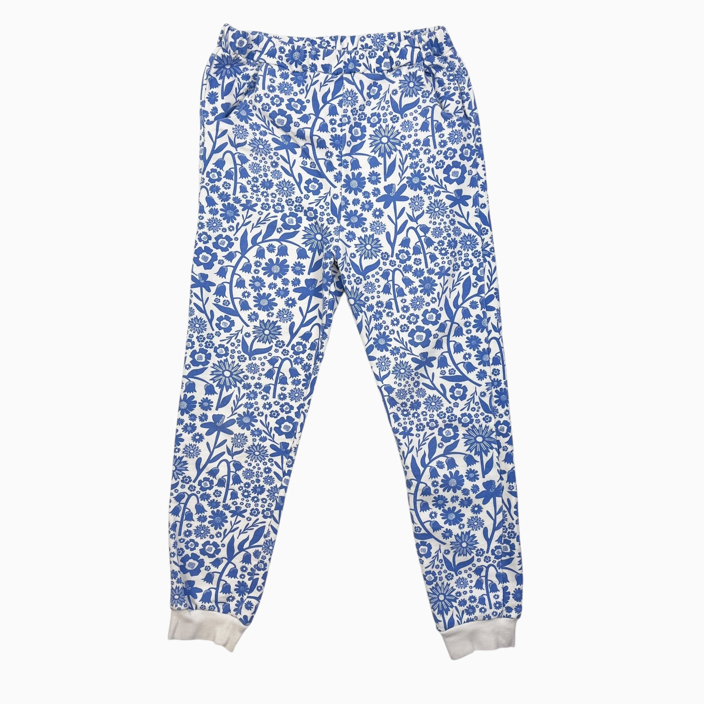 Pantalon blanc fleurs bleues en coton bio 10Y