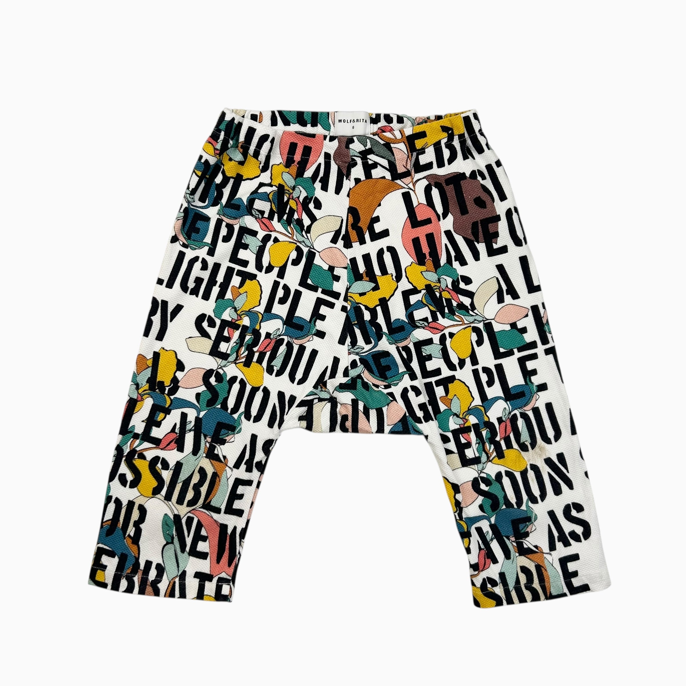 Pantacourt harem blanc à motifs avec écriture 6Y