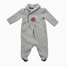 Pyjama en coton gris chiné avec broderie festive et col châle 3M