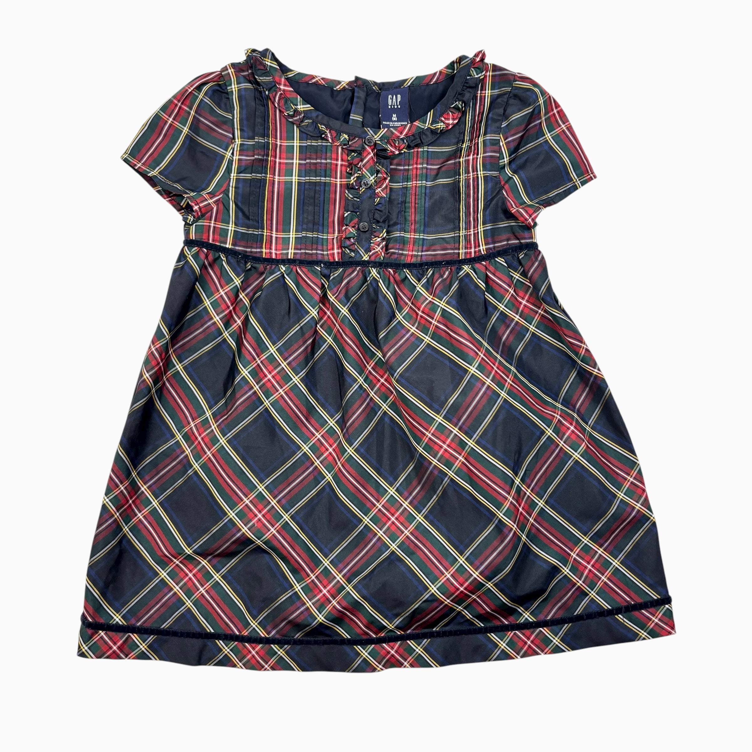 Robe marine tartan en poly satiné (fit petit) 8Y (6Y)