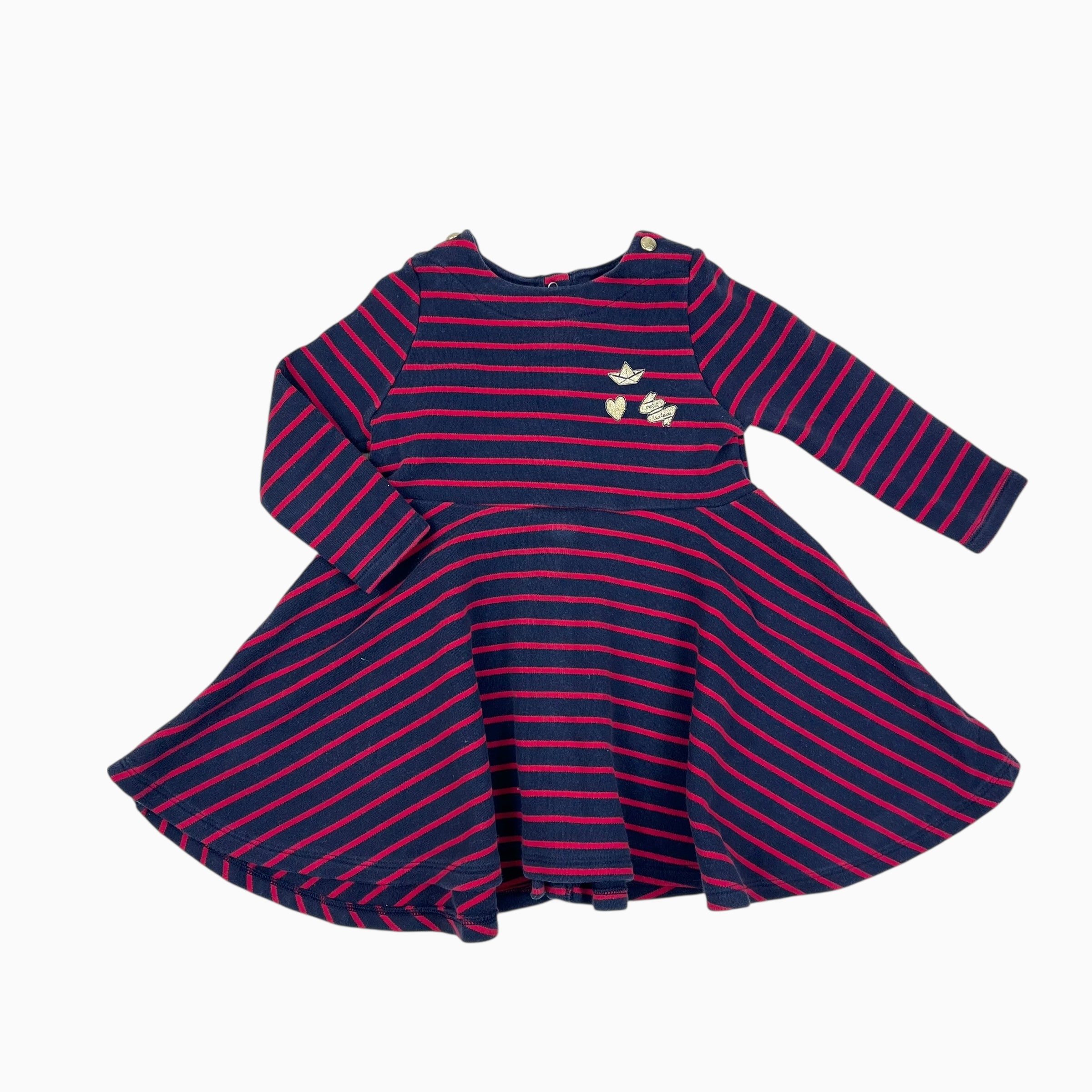 Robe marine à rayures rouges en coton épais 24M