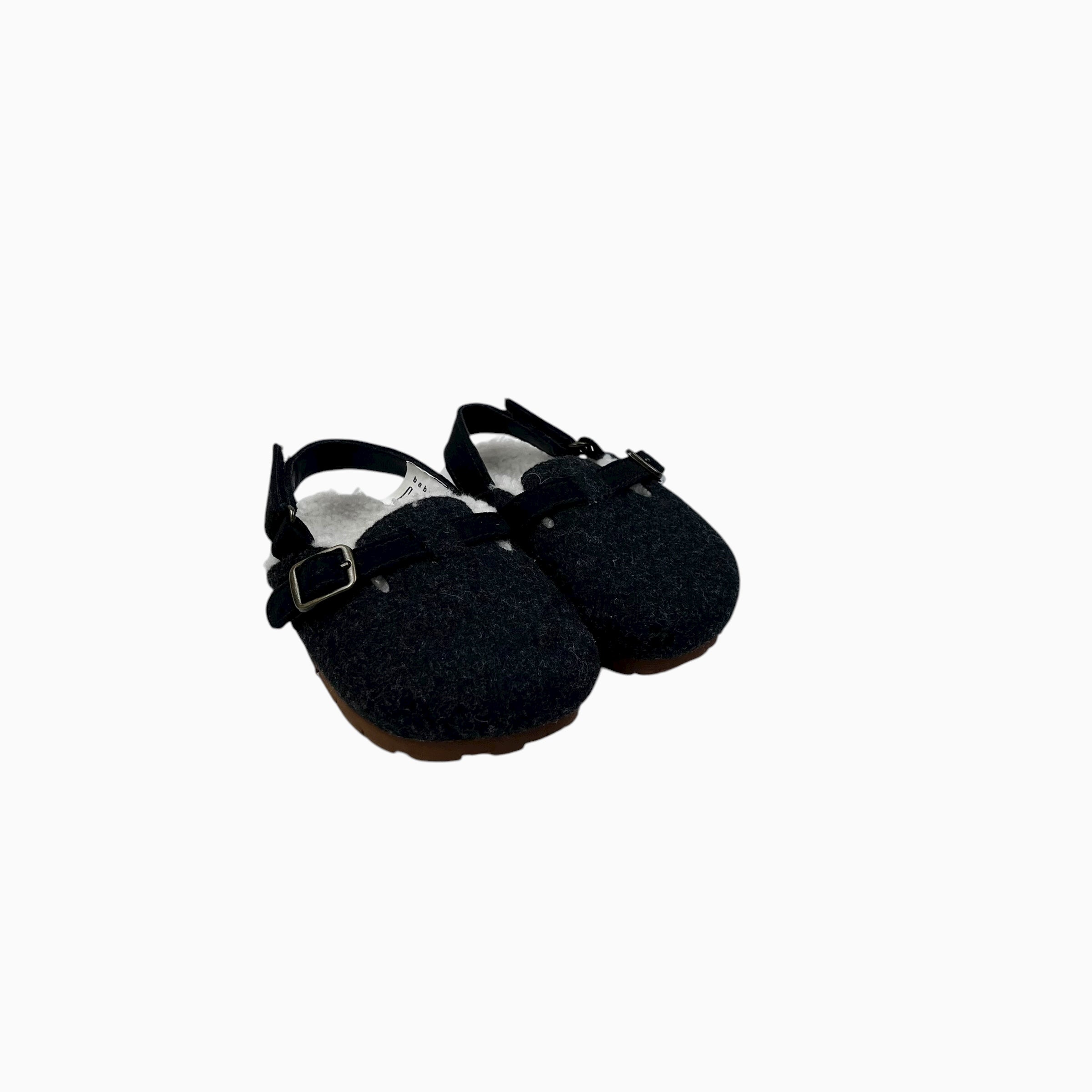 Sandales fermées noires doublées en sherpa à velcro 5-6US