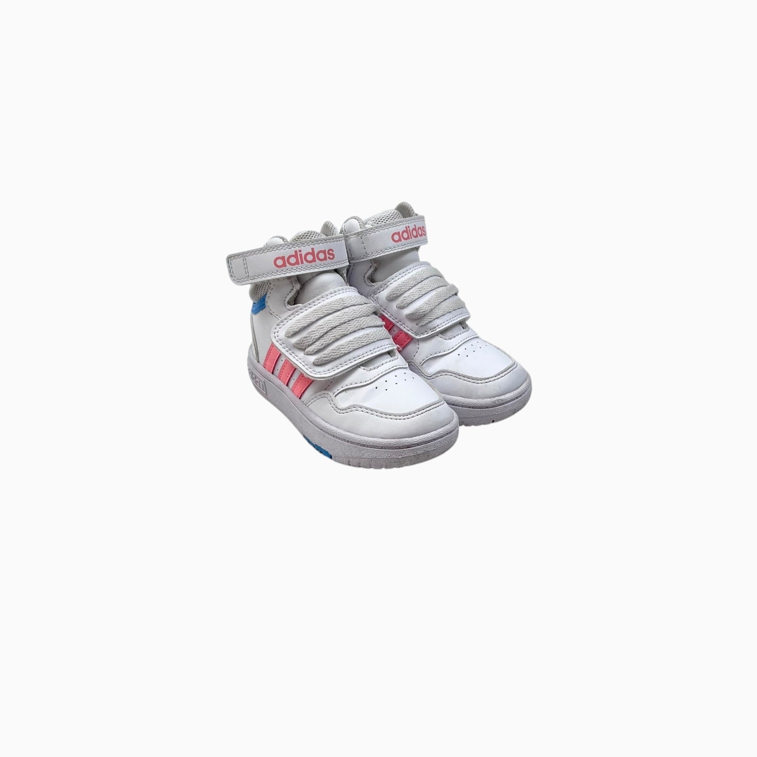 Sneakers blancs à velcro avec détail corail néon et cyan 6US
