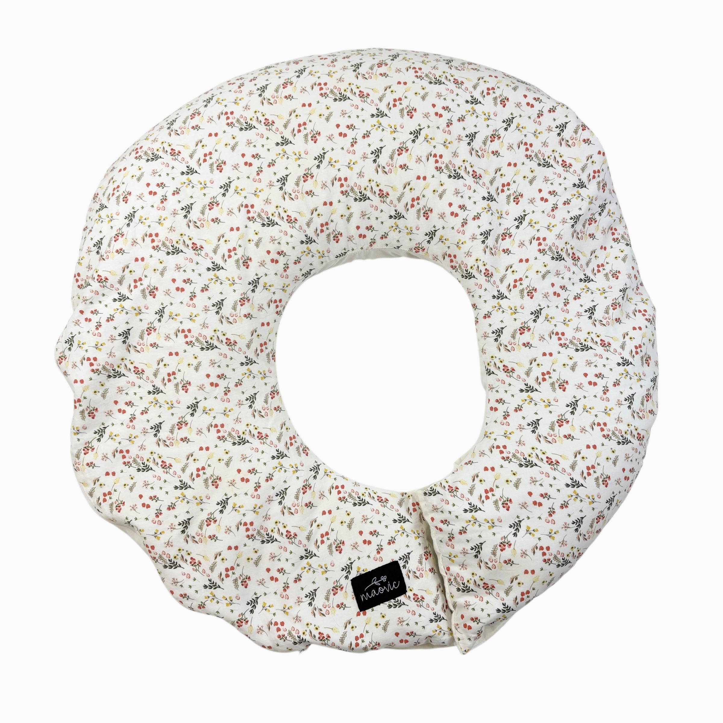 Coussin d'allaitement en écale de sarassin avec housse blanche fleurie