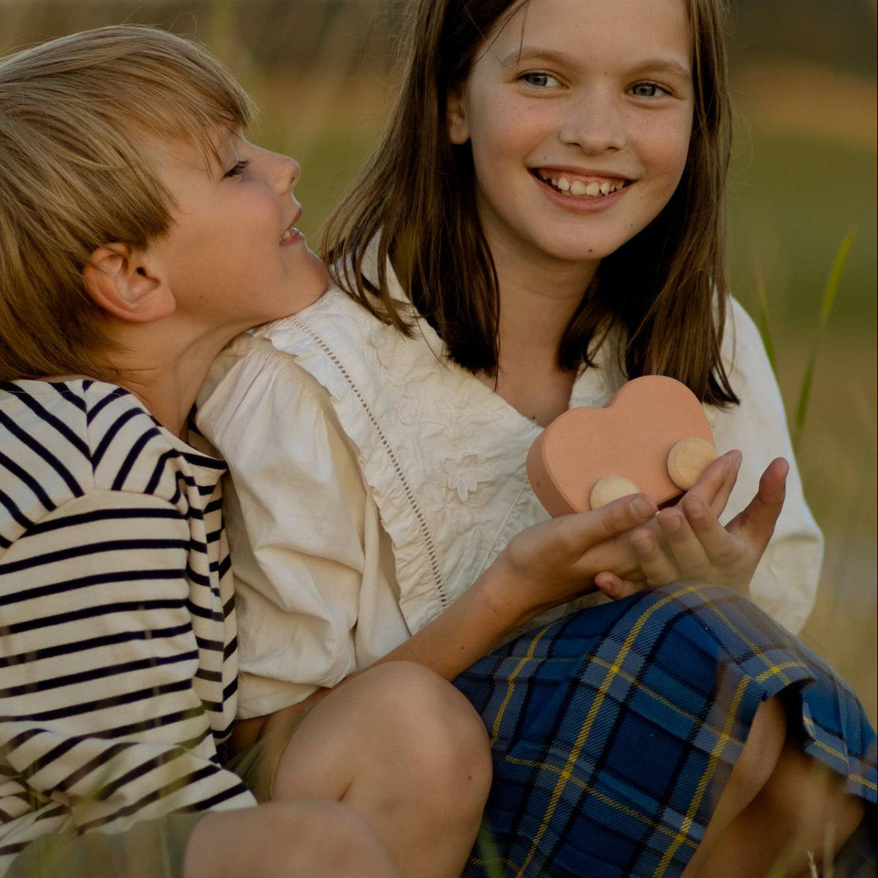 Jouet de voiture coeur rose en bois