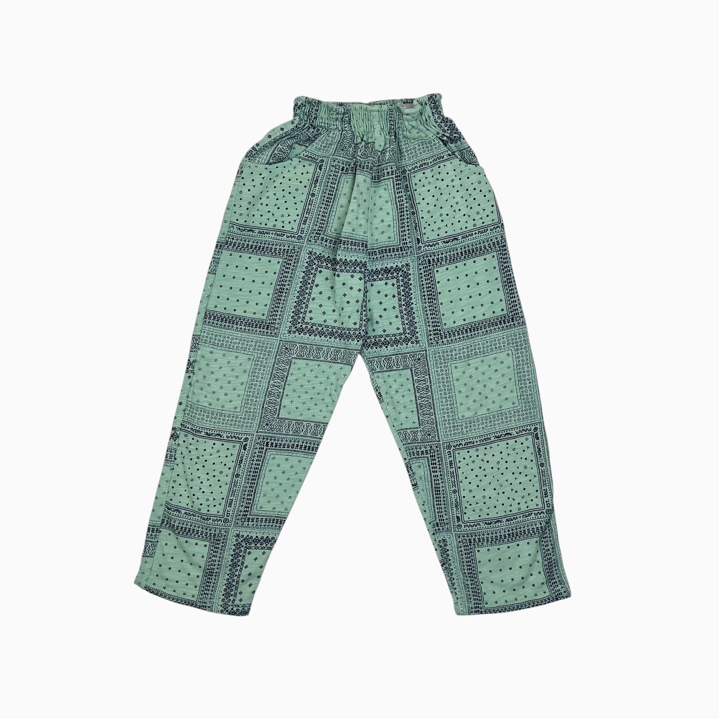 Pantalon vert 'paisley' en coton pima bio (fait grand) 4-5Y