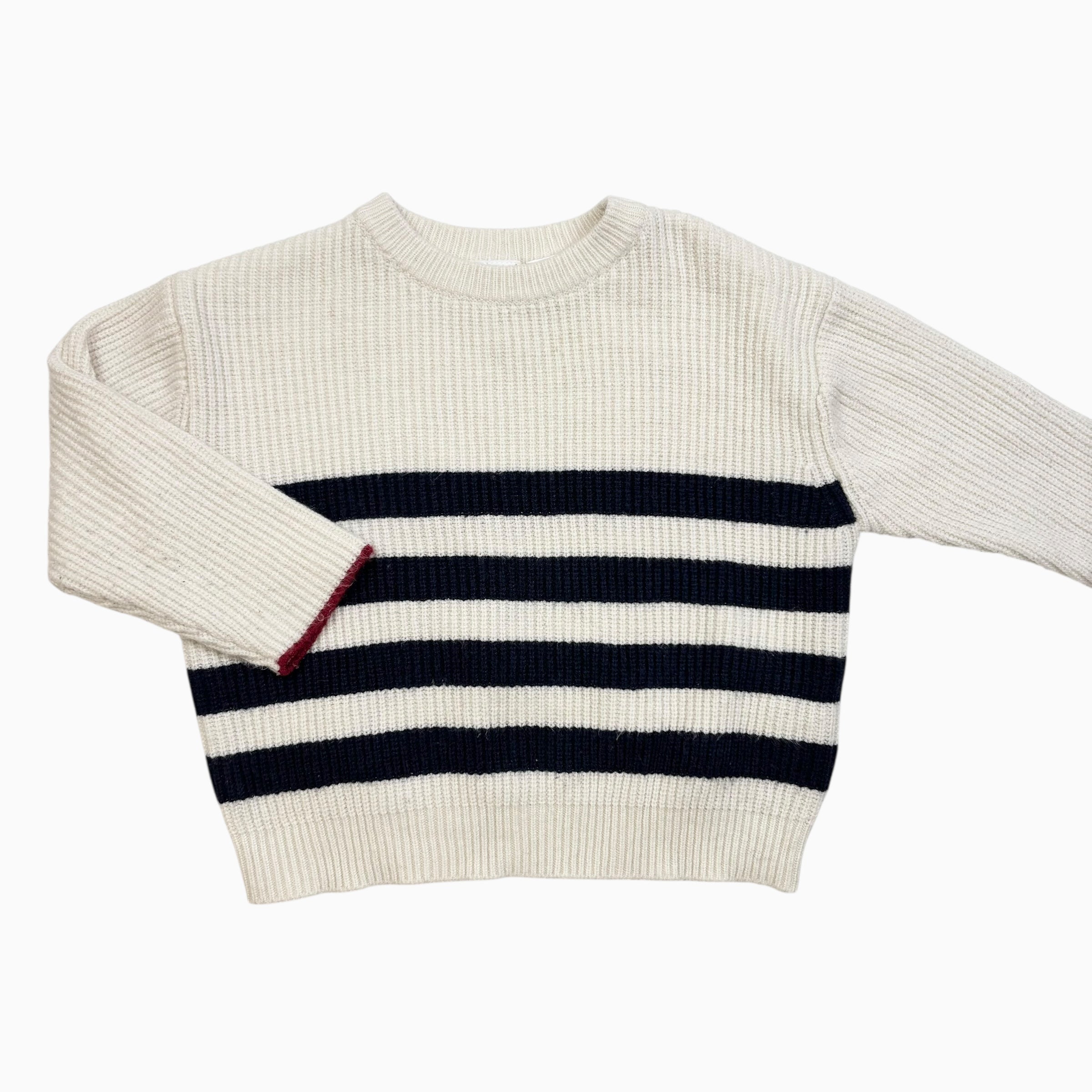 Pull crème à rayures marine en tricot de viscose, poly 12-18M