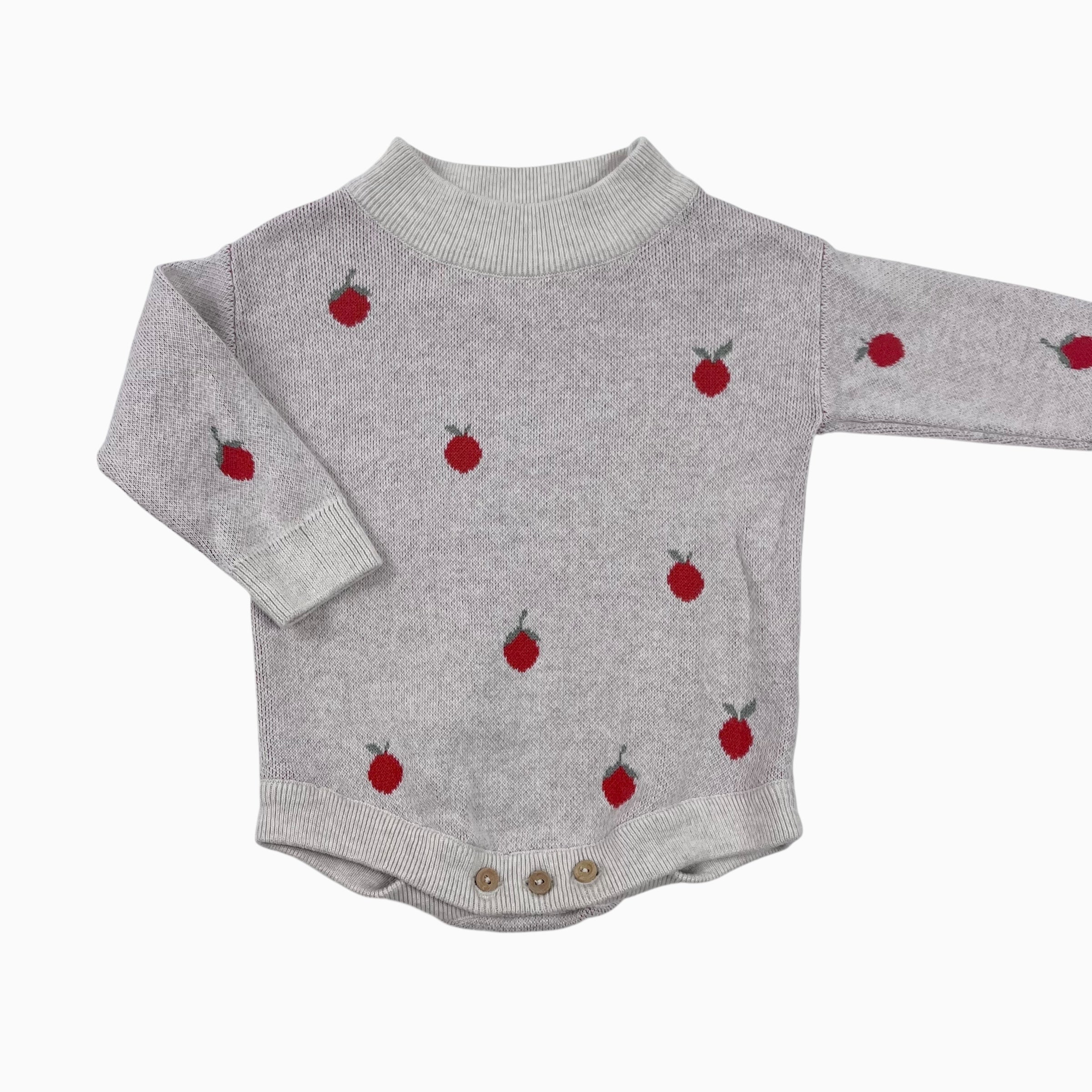 Combi en tricot de coton bio 'Pommes' 0-3M