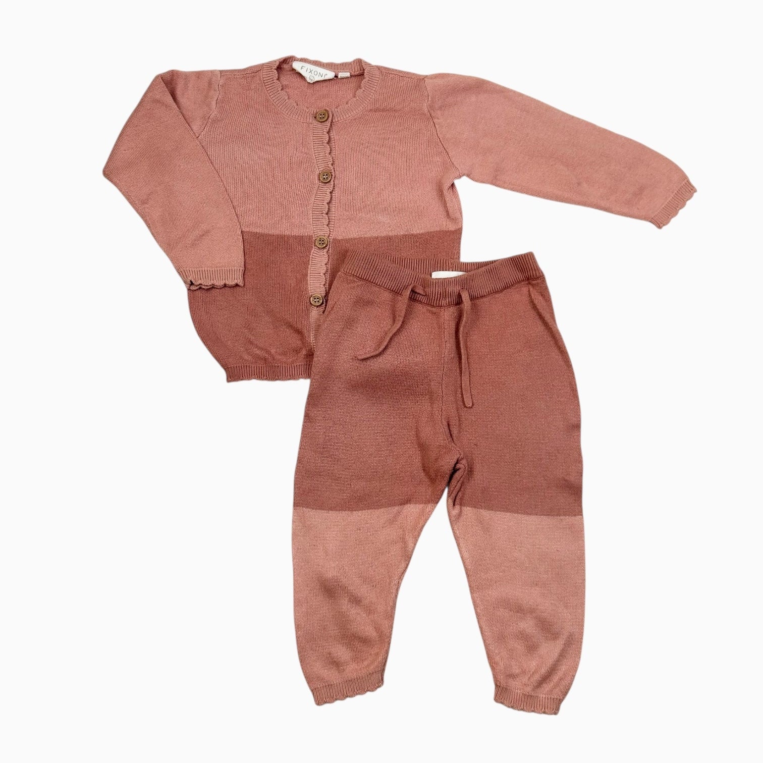 Ensemble cardigan et pantalon blush en tricot de viscose et coton 6M