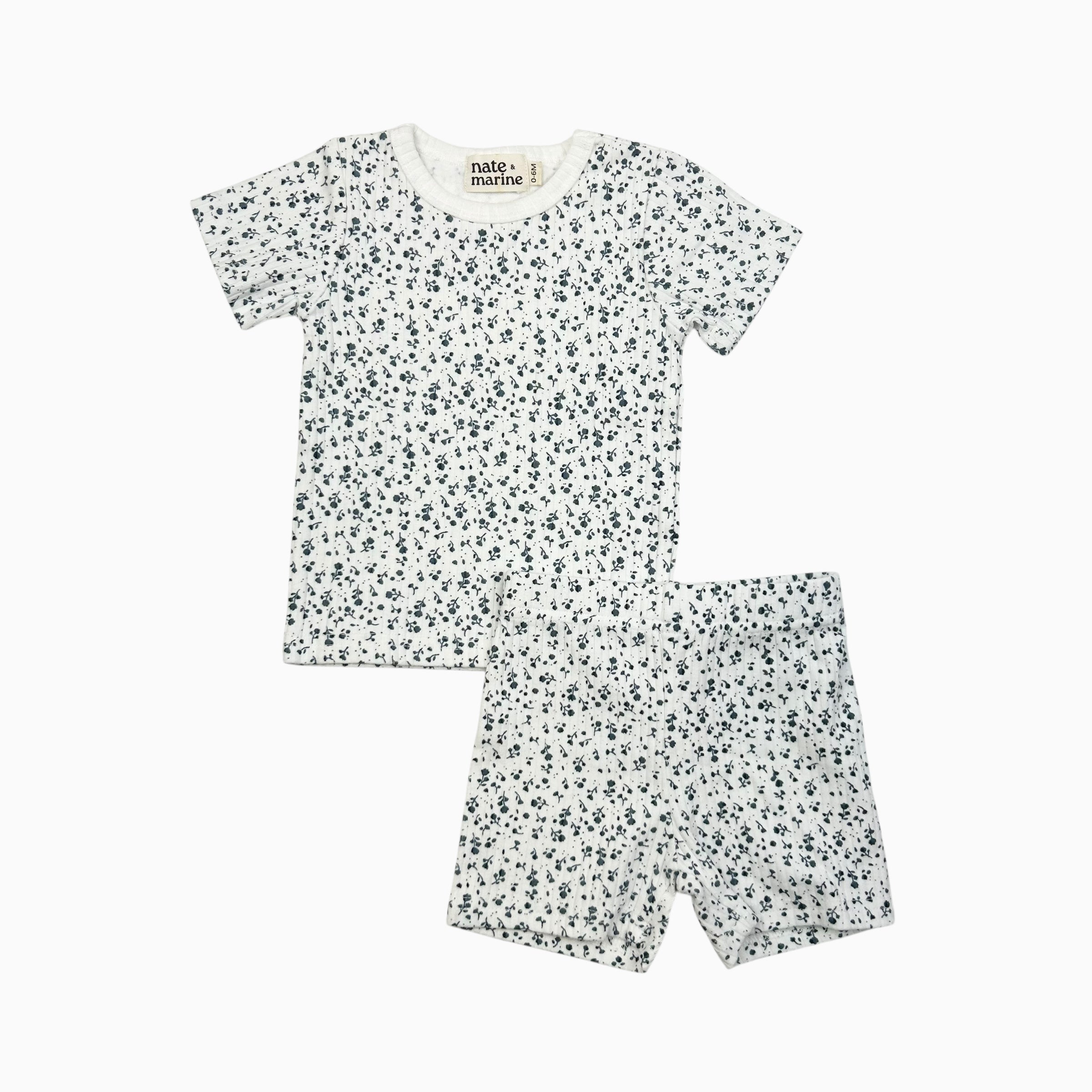 Pyjama court blanc fleuri bleu 0-6M