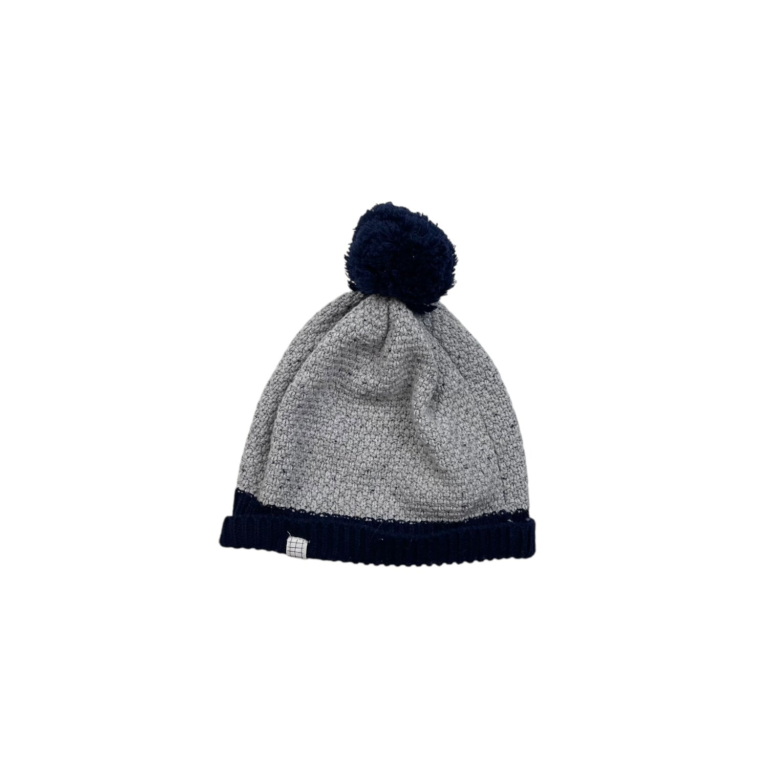 Tuque grise et marine avec pompon en tricot T1 2-4Y