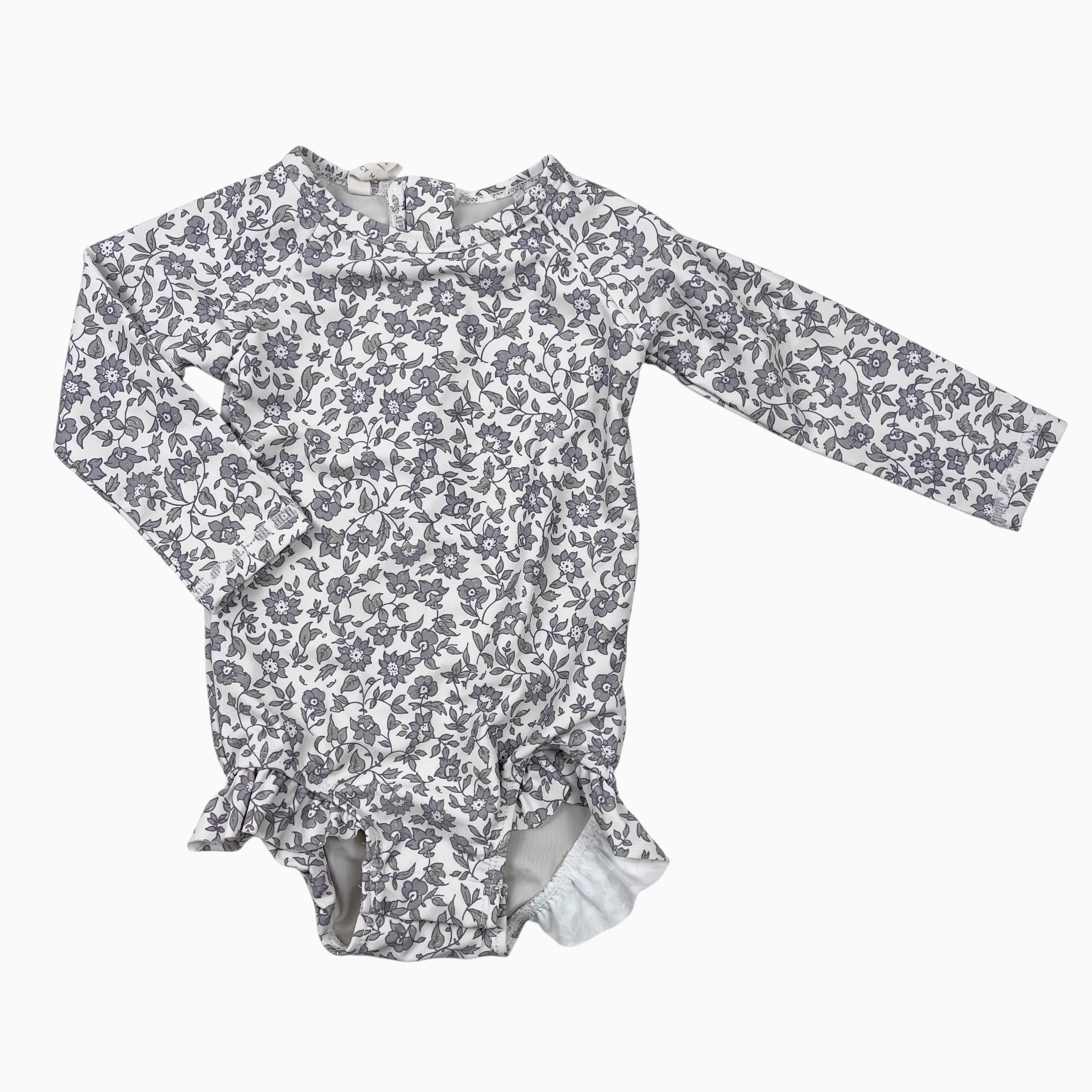 Maillot blanc fleuri gris-lilas 6-12M