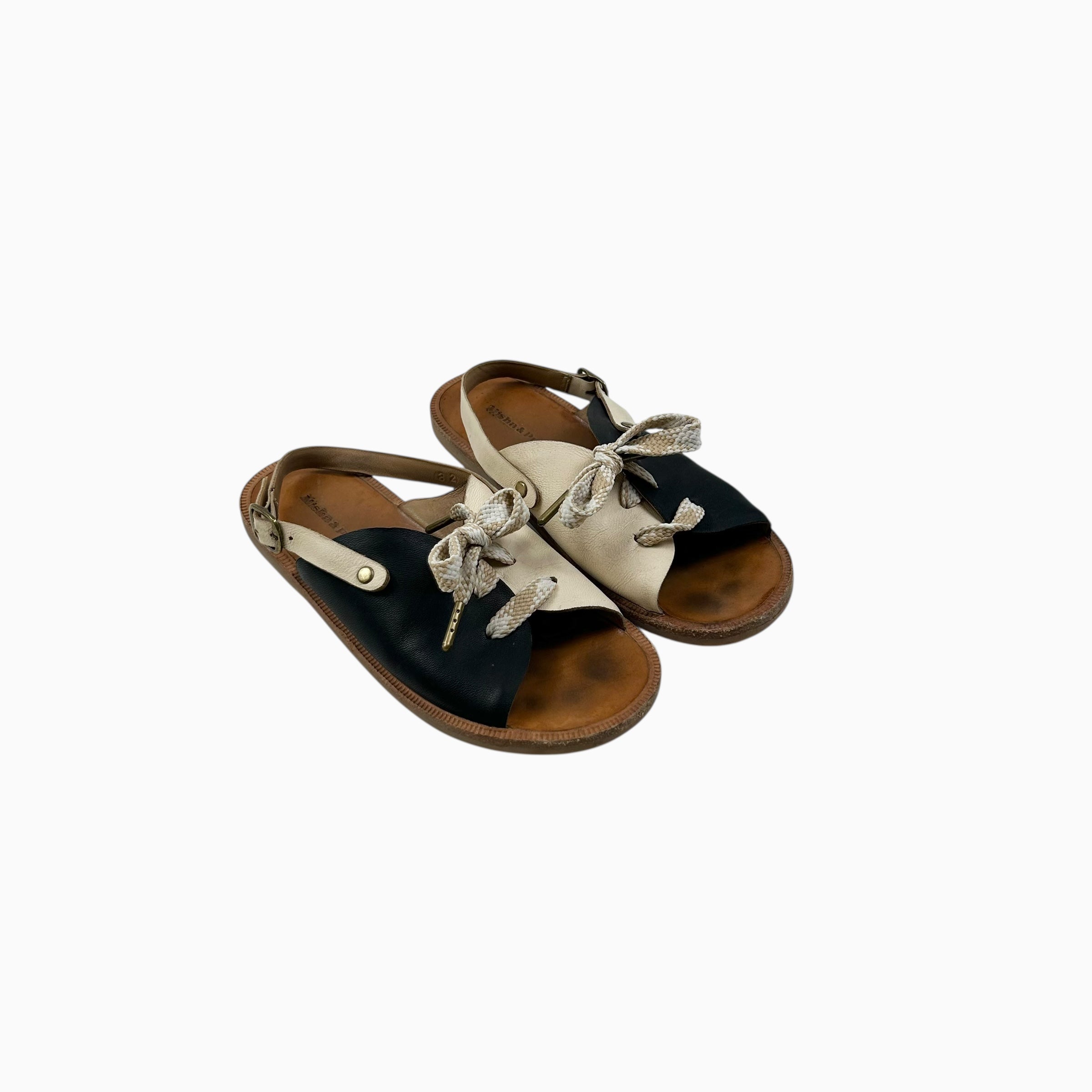 Sandales vanille et noires en cuir 20.5CM 32EU