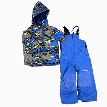 Manteau bleu style camouflage doublé en polar et salopette de neige 3Y