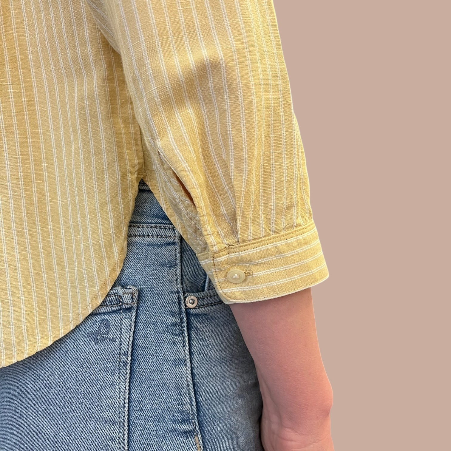 Blouse jaune à rayures en rayonne, lin et coton pour femmes XS