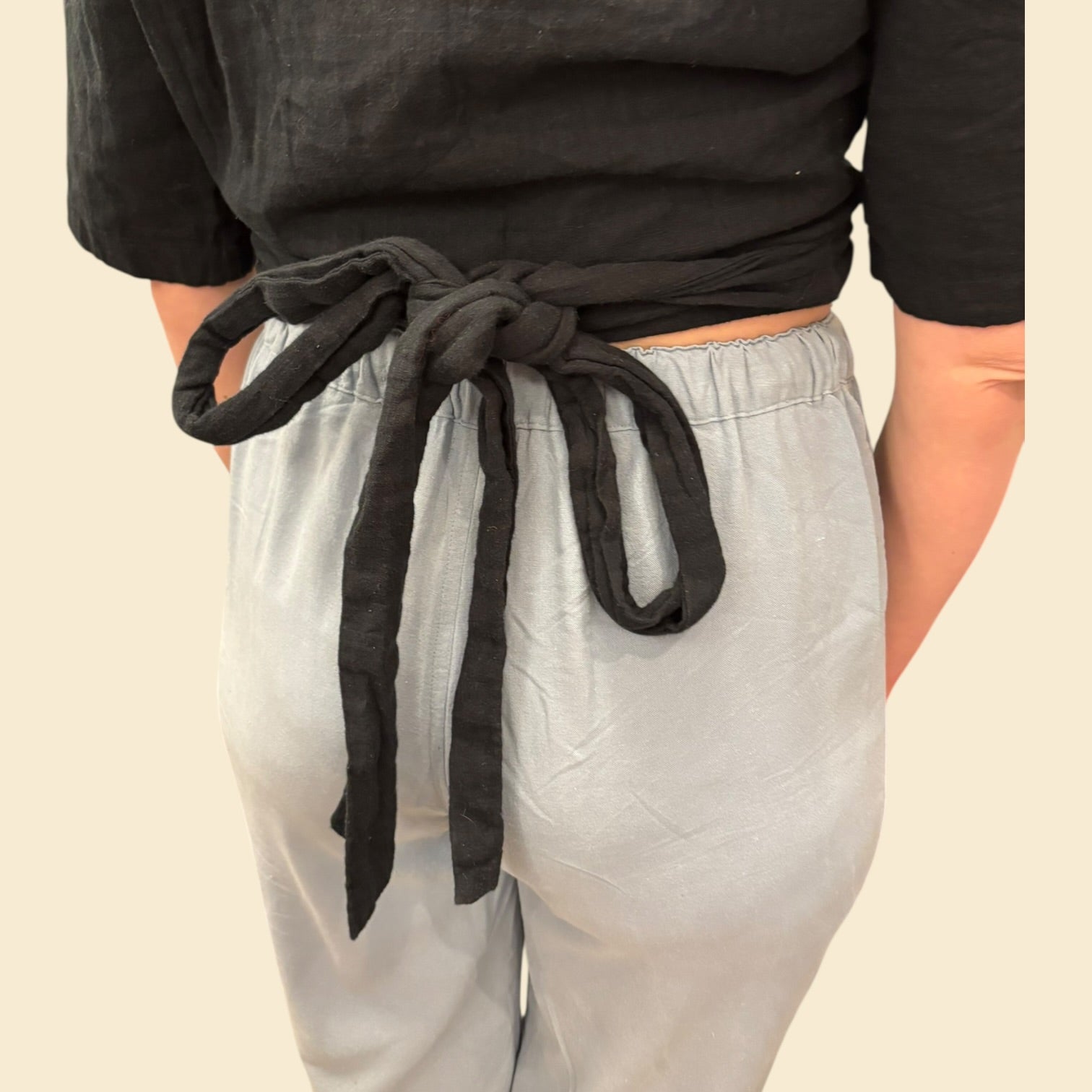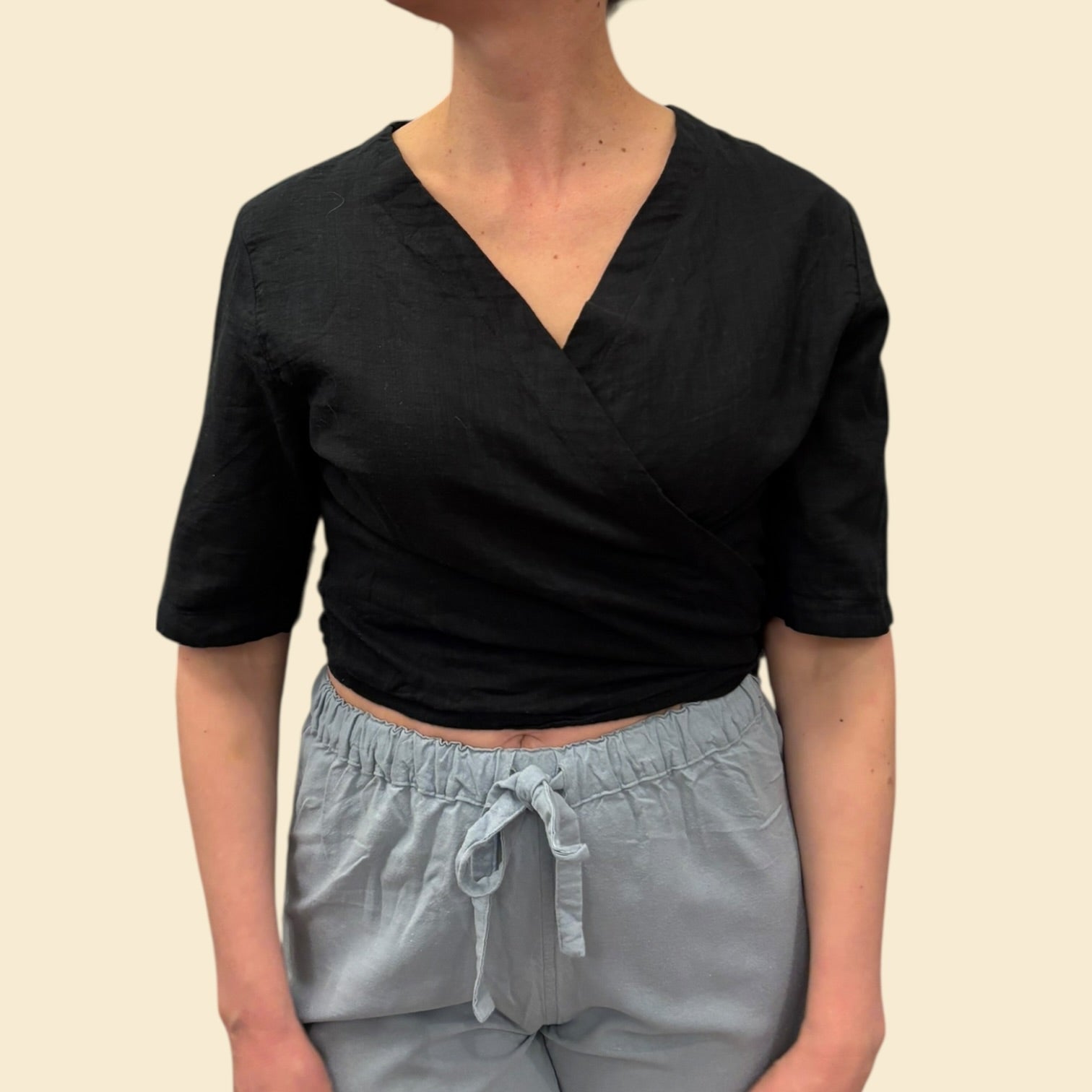 Haut noir cache-coeur en mousseline de coton doublée pour femmes S