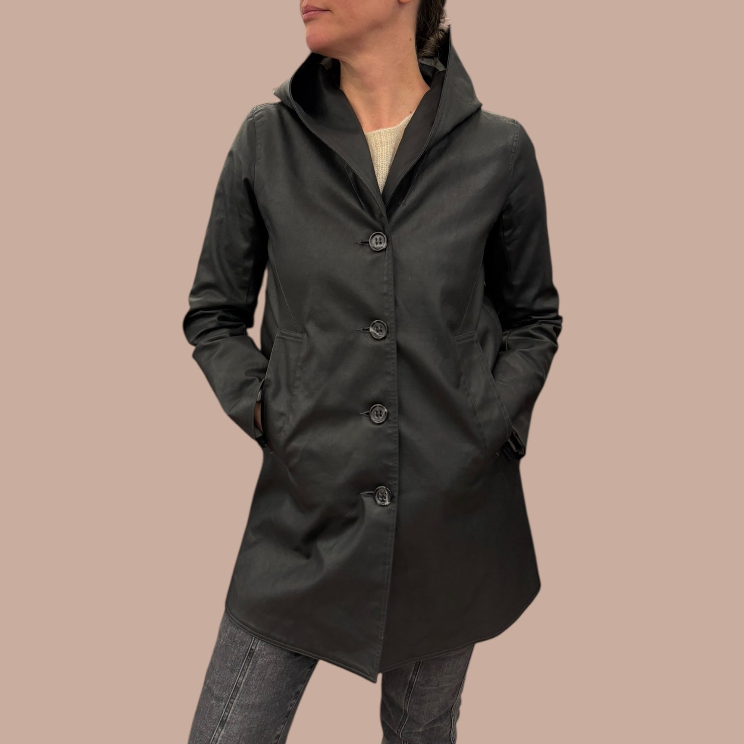 Manteau de pluie noir en coton ciré pour femme XXXS fit XS